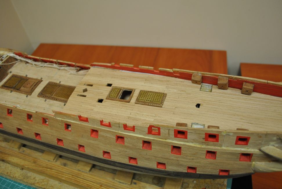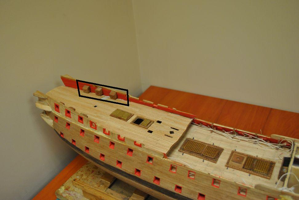 Zaczynam wykonywać pokład od strony rufy i przymierzyłem go do modelu. W tym pokładzie w okolicy grotmasztu są dwa otwory kwadratowe i dwa prostokątne. W materiałach które posiadam otwory te są odkryte. Czy te otwory posiadały jakieś przykrycie czy trzeba było na nie uważać. Może ktoś wie czy w liniowcach 74 działowych przy grotmaszcie i bezanmaszcie były jakieś bloczki i co wciągały.