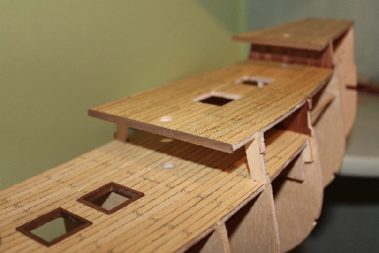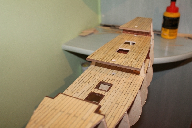 Witam wszystkich po długiej przerwie. Niestety z powodu "obowiązków służbowych" nie jestem w stanie poświęcać galeonowi zbyt dużo czasu. :( Ostatnio dokończyłem deskowanie pokładów a w połowie tygodnia zabiorę się za burty okrętu.