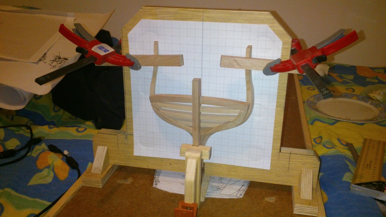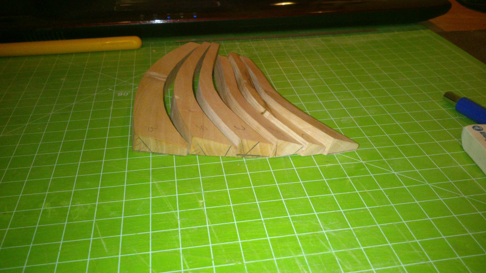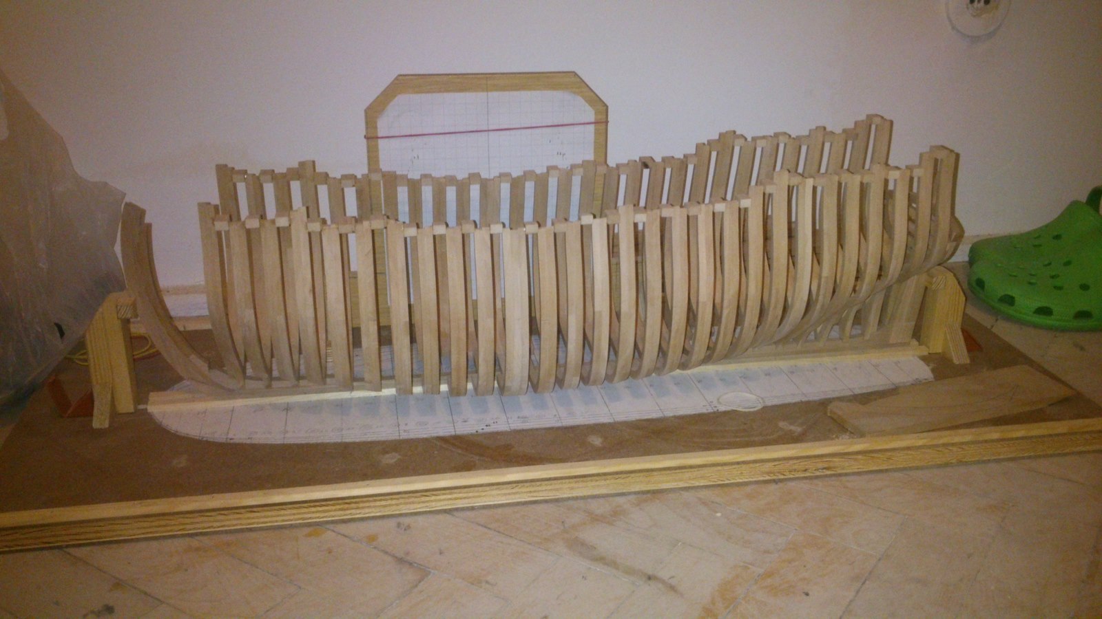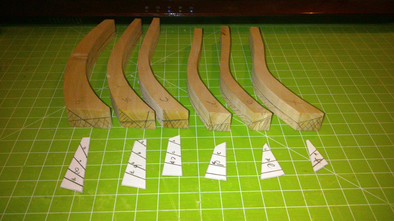 Witam, kołkowanie wręg wykonałem tak jak jest pokazane na animacji komputerowej z budowy La Belle. Wręgi już oszlifowane i zakołkowane no i w końcu zacząłem montaż wręg na kilu. Najwięcej czasu i pracy zajęło mi ich wykonanie oby to już jakoś bez większych problemów "poszło".