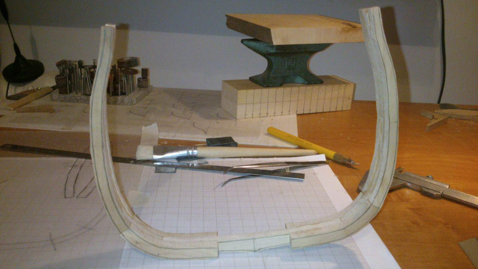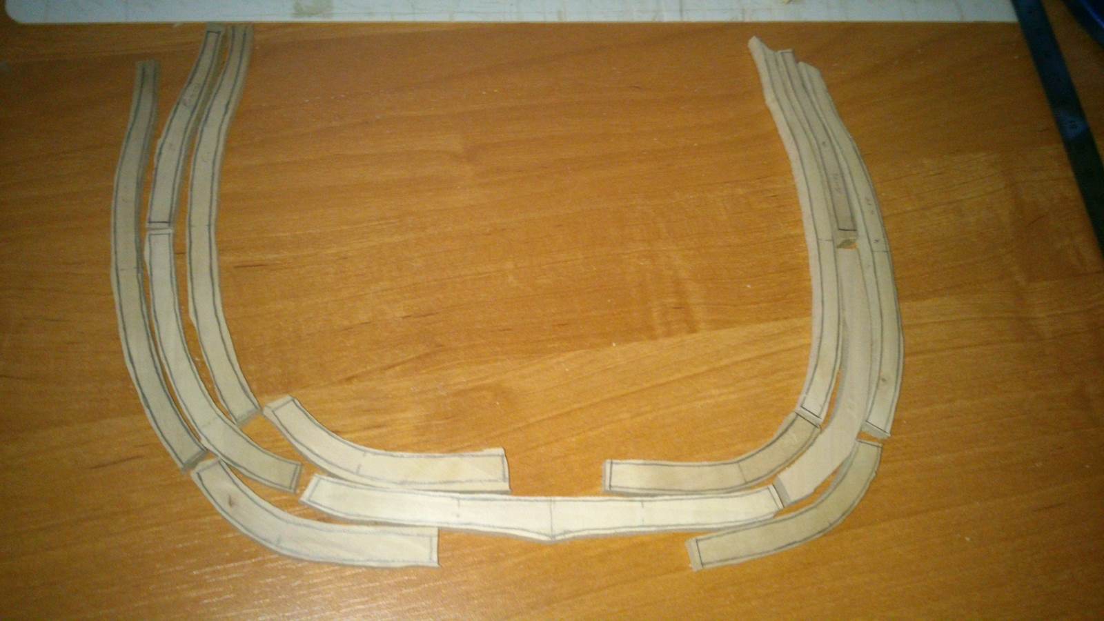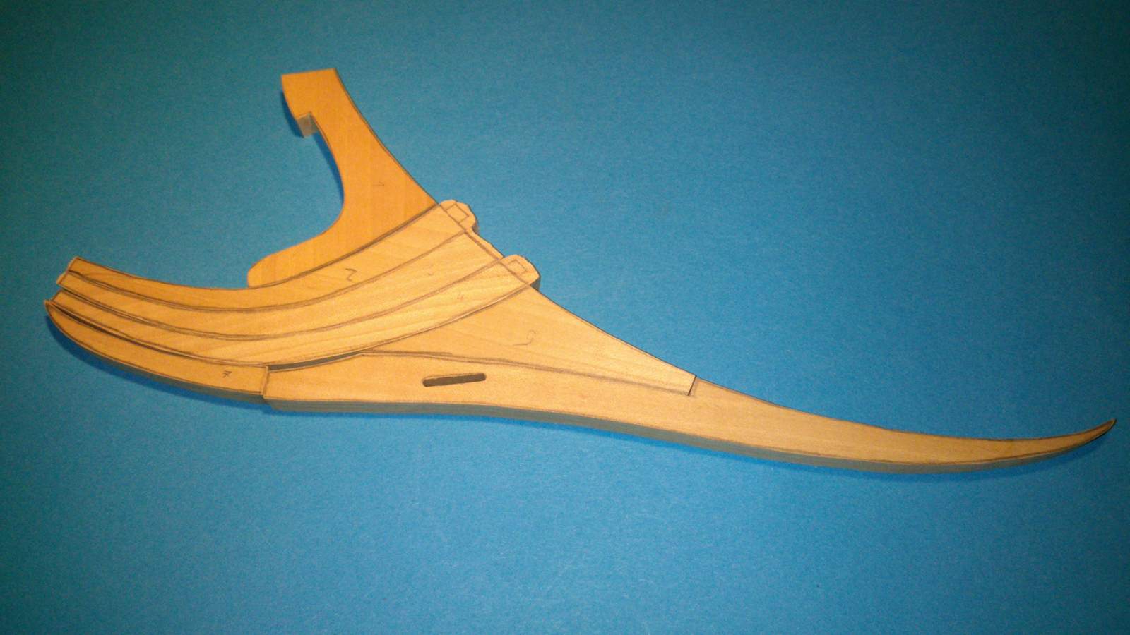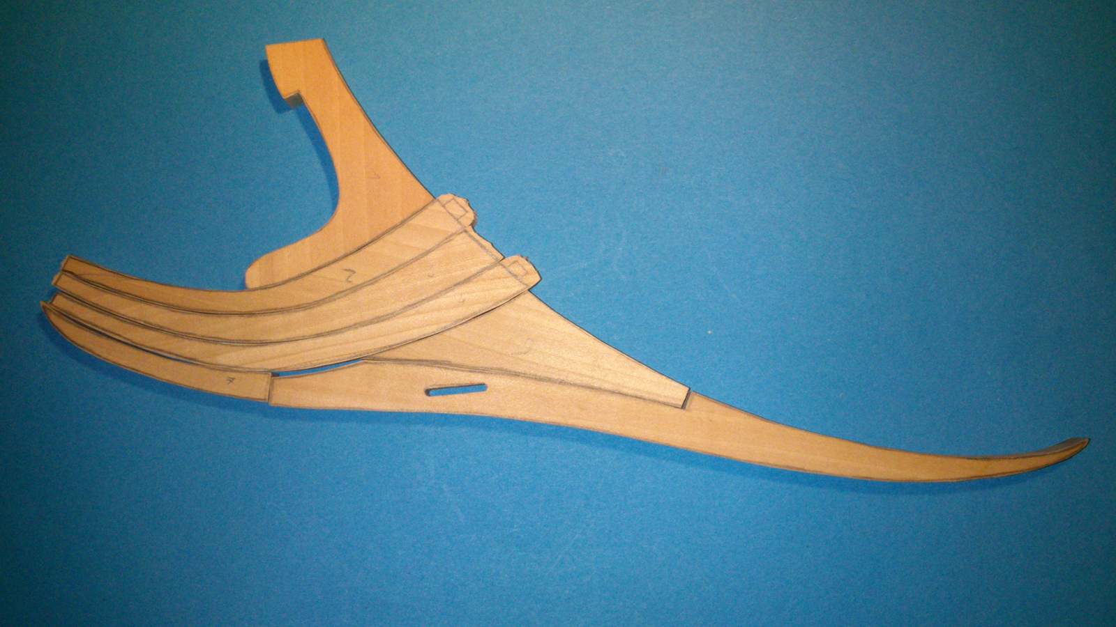 Rozpocząłem wycinanie i powolne sklejanie wręg. Na pierwszy "strzał" powstała wręga M (jeszcze nie szlifowane)
