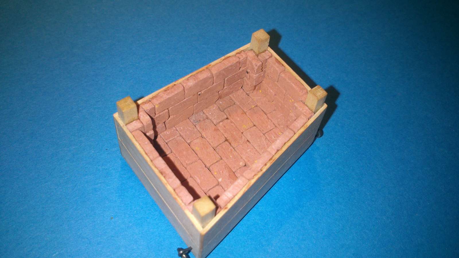 Właśnie skończyłem kuchnie wykładać cegiełkami ( całe popołudnie dopasowywania, docinania, ale w końcu się udało). Skala cegiełek może nie odpowiednia bo 1:35, ale raczej już zostawię tak jak jest. Cegiełki są z gipsu z barwnikiem który mało przypomina prawdziwy kolor cegły, ale jest jak jest. Cegiełki wklejałem na klej Pattex Express i jak na razie jakoś to się "kupy" trzyma.