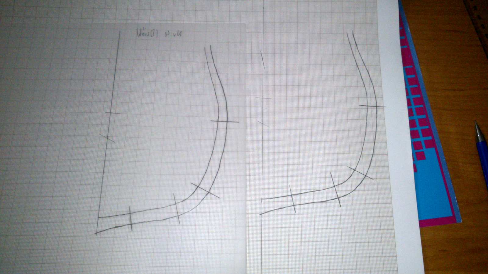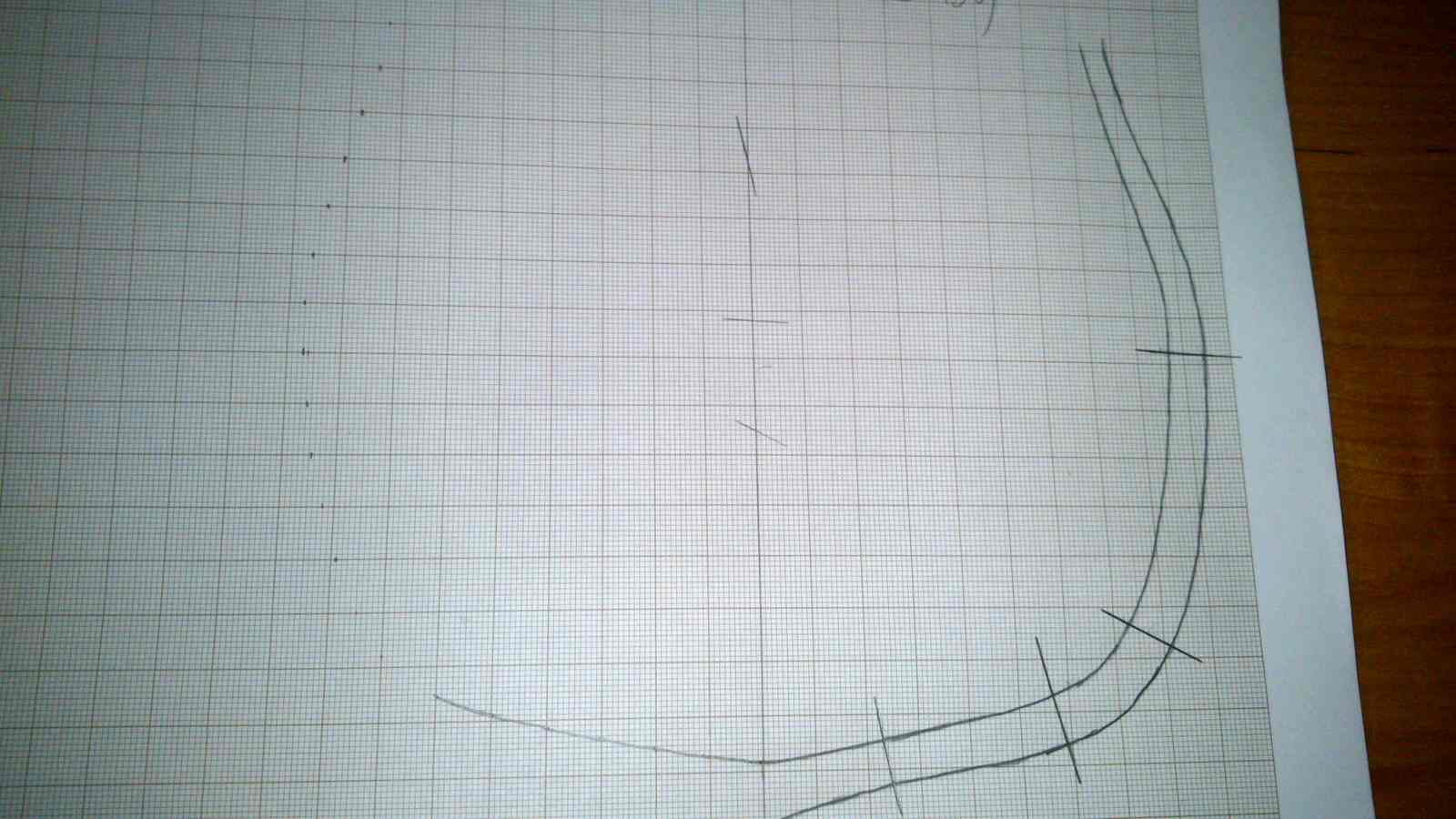 Następnie odbijam kształt połówki wręgi na kartkę bloku milimetrowego i odbity kształt poprawiam ołówkiem.