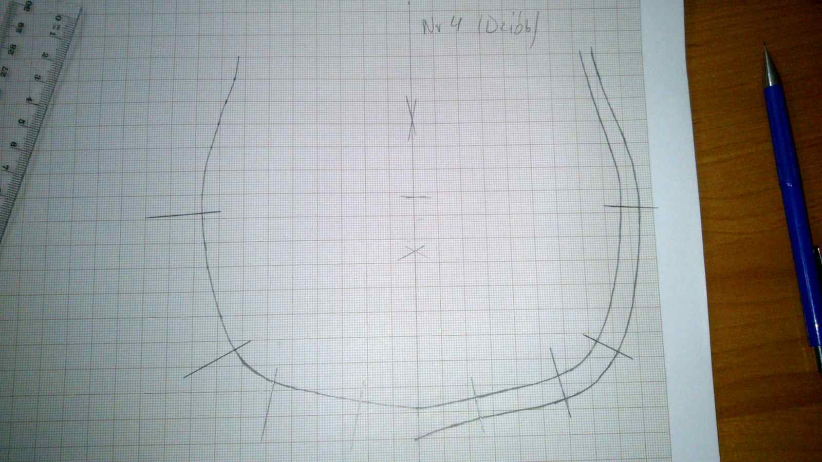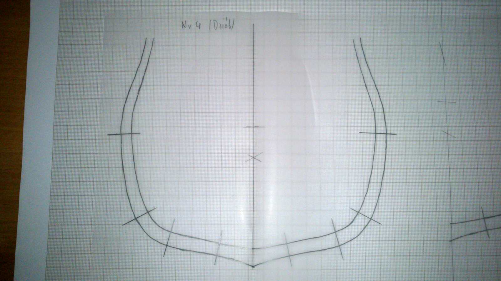 Później na bloku milimetrowym "odbijam", nanoszę ważne punkty wręgi po przeciwnej stronie jej osi i owe punkty łączę ze sobą ( chyba w tym roku na maturze będą zadania tego typu " Połącz zaznaczone punkty i napisz co Ci wyszło")