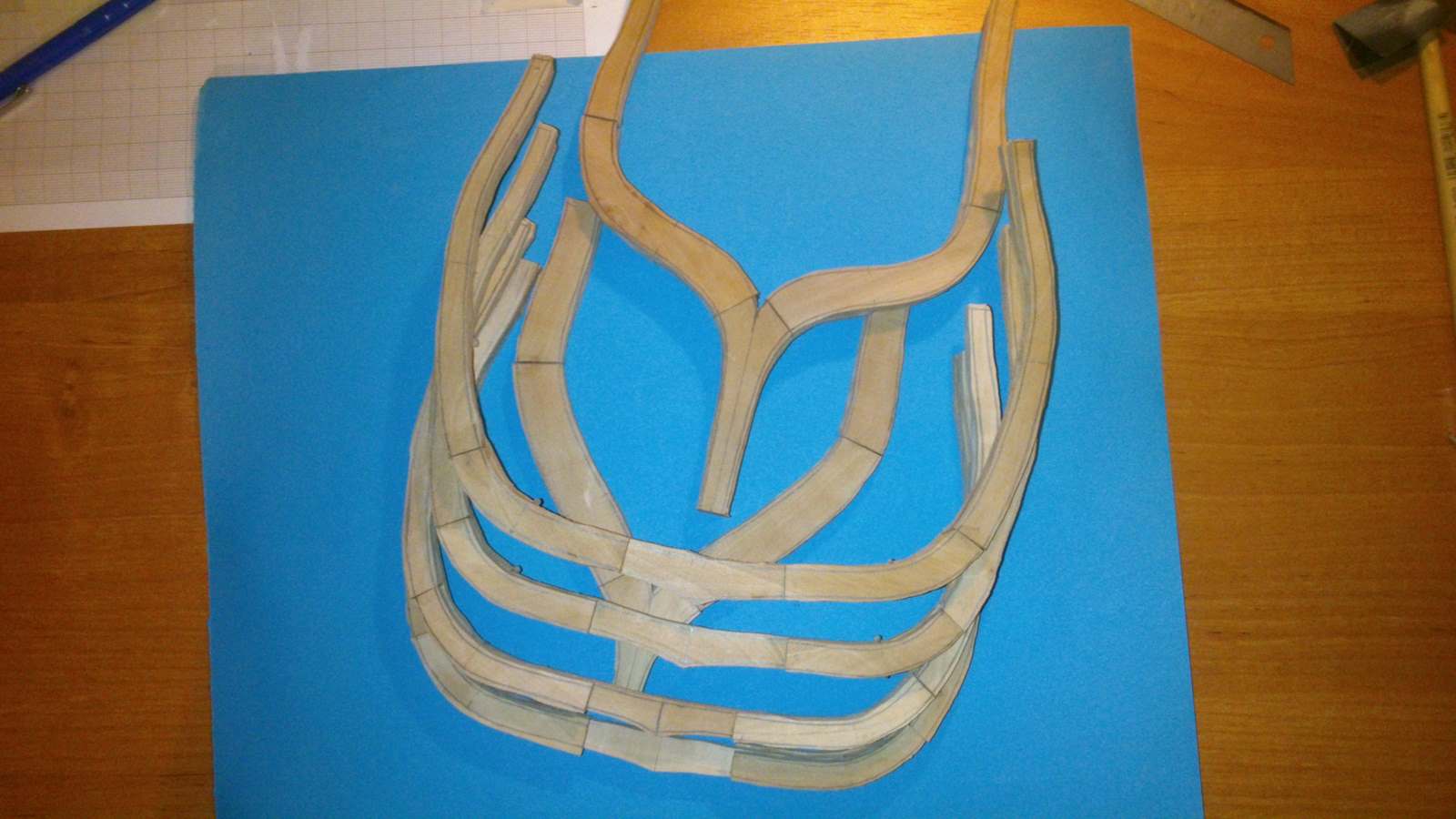 symetrii.Ponieważ wręgi składają się z kilku sklejanych części,wycinałem
