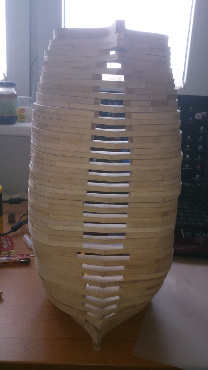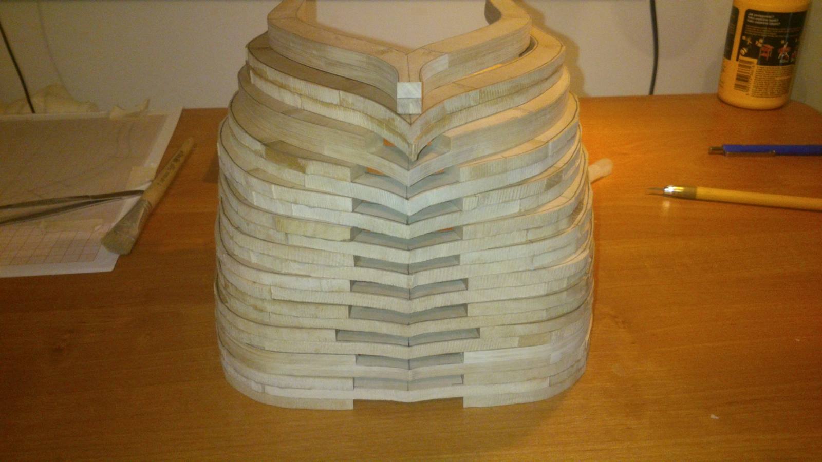 Gotowa wręga. Po sklejeniu wręgi odkładam na noc pod obciążeniem do całkowitego wyschnięcia kleju.