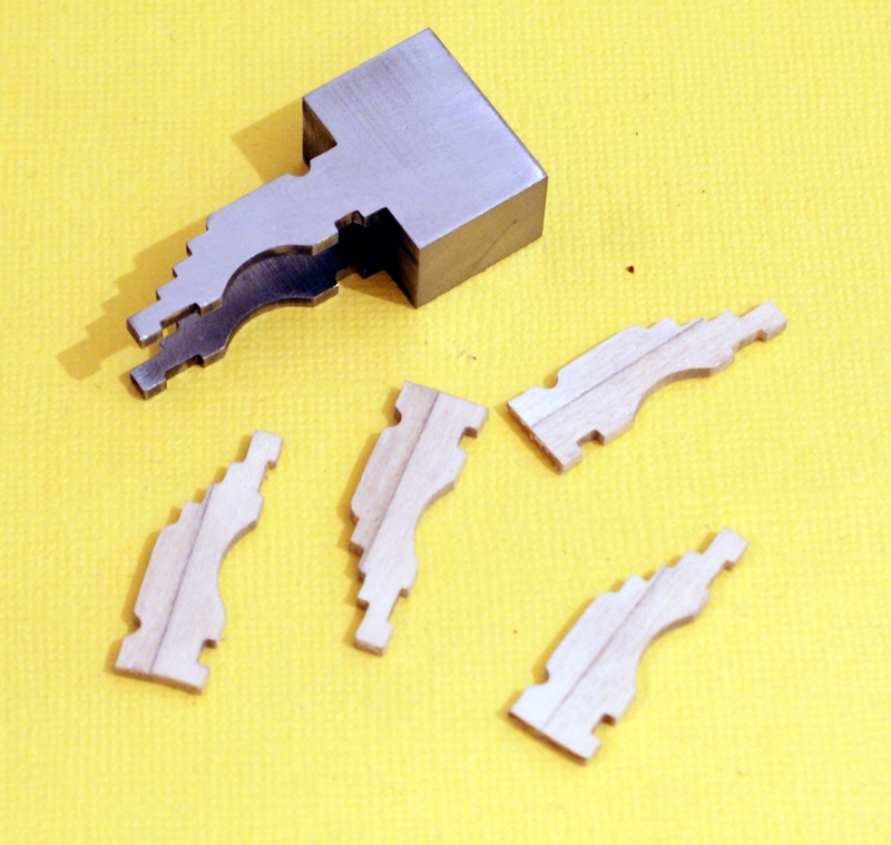 A tak wyglądają elementy wycięte w tym szabloniku. Materiał to lipa (wyłącznie do próby). Oryginalne będą wycięte z gruszy.