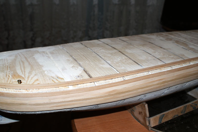 Mała dygresja.To trzeba zrobić przed poszyciem, bo potem nie dopasujesz burty w miejscu styku z pokładem.
