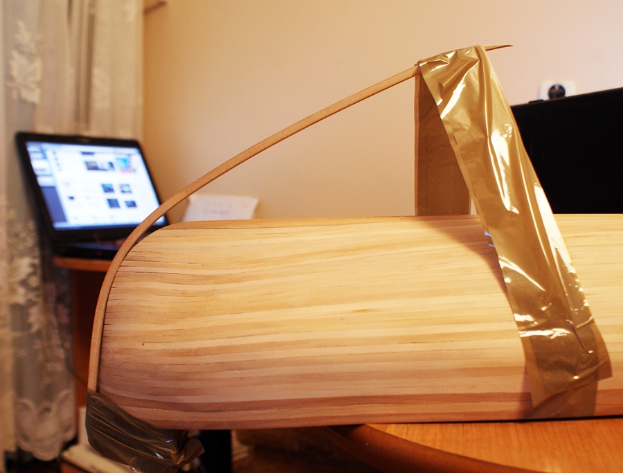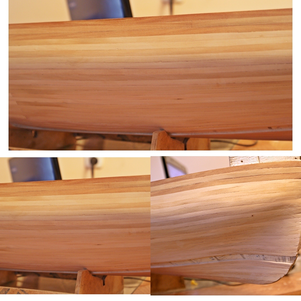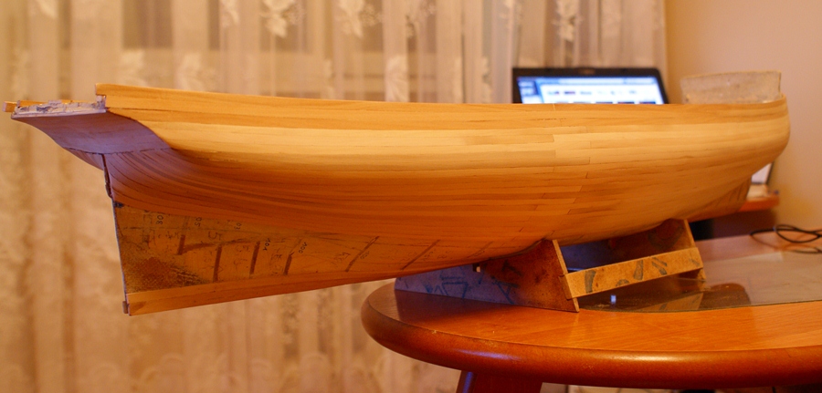 Planki za mało zwężają się w kierunku dziobu. Teraz na środku masz jeszcze dużą szerokość do pokrycia, a przy dziobie bardzo małą. Tu już nic nie zrobisz