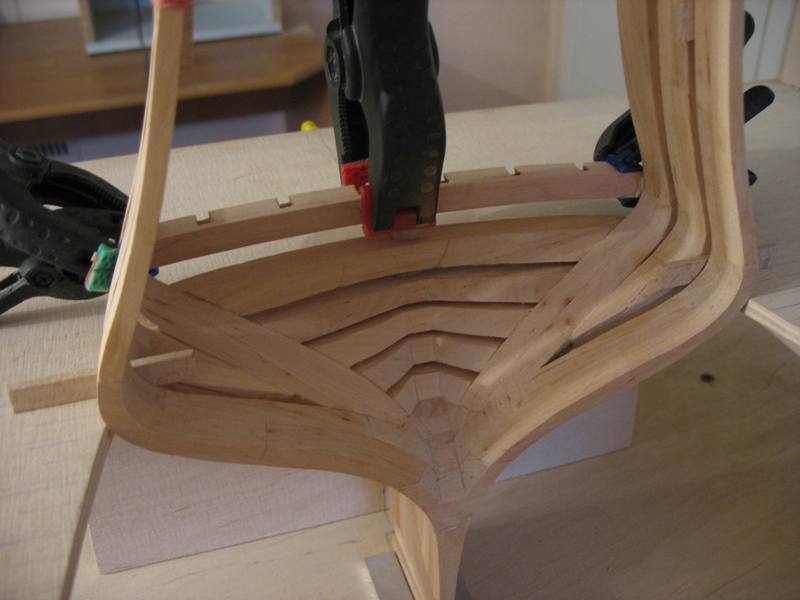 dokleiłem dwie ostatnie wręgi do rufy trochę nietypowe więc sporo kombinowania z nimi było no ale teraz pięknie wszystko schnie :D