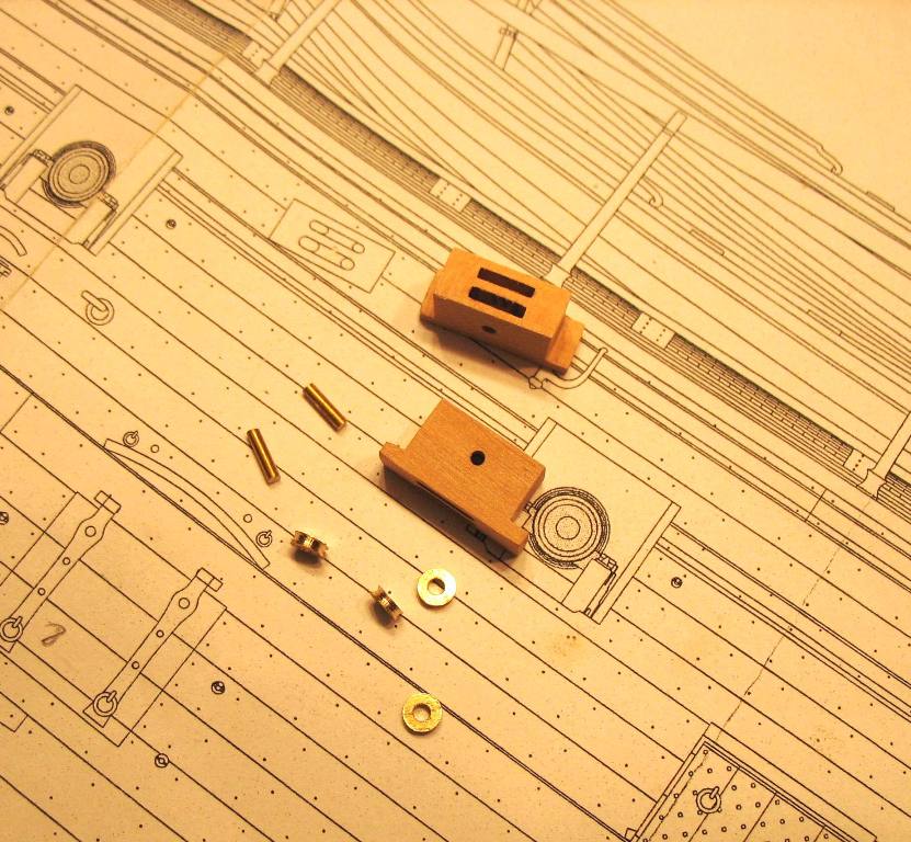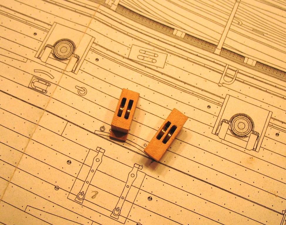 Te bloczki powinny mieć zaokrąglone końce tych otworów gdzie idzie lina . Tak pokazuje plan . Poprawić mi to natychmiast ! Dobrze że czuwam ;)