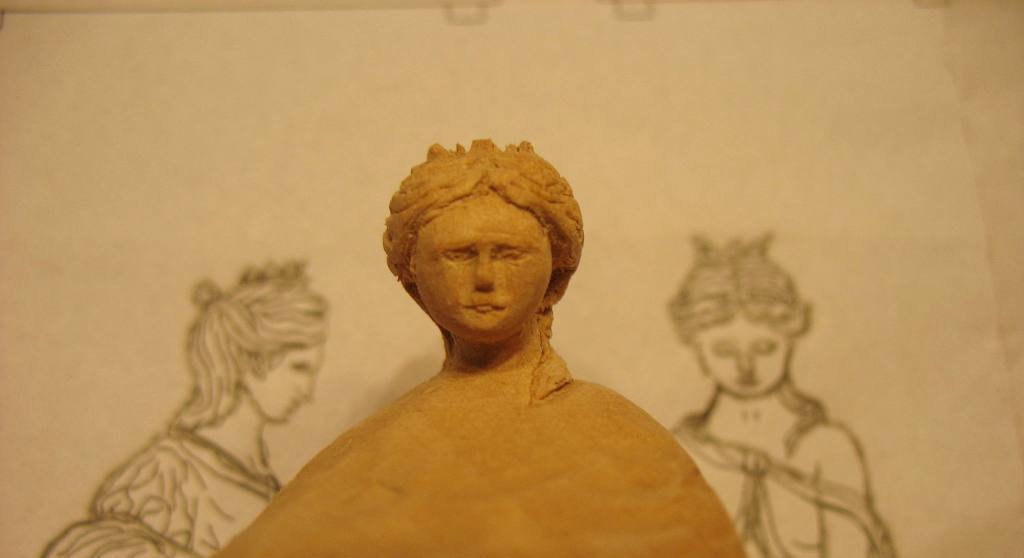 Takie są początki rzeźbienia.Potem będziesz odchudzał panienkę i poprawiał szaty. Odłożysz to na jakiś czas zobaczysz następne błędy i tak aż do uzyskania właściwego wyglądu.Na razie idzie dobrze.R