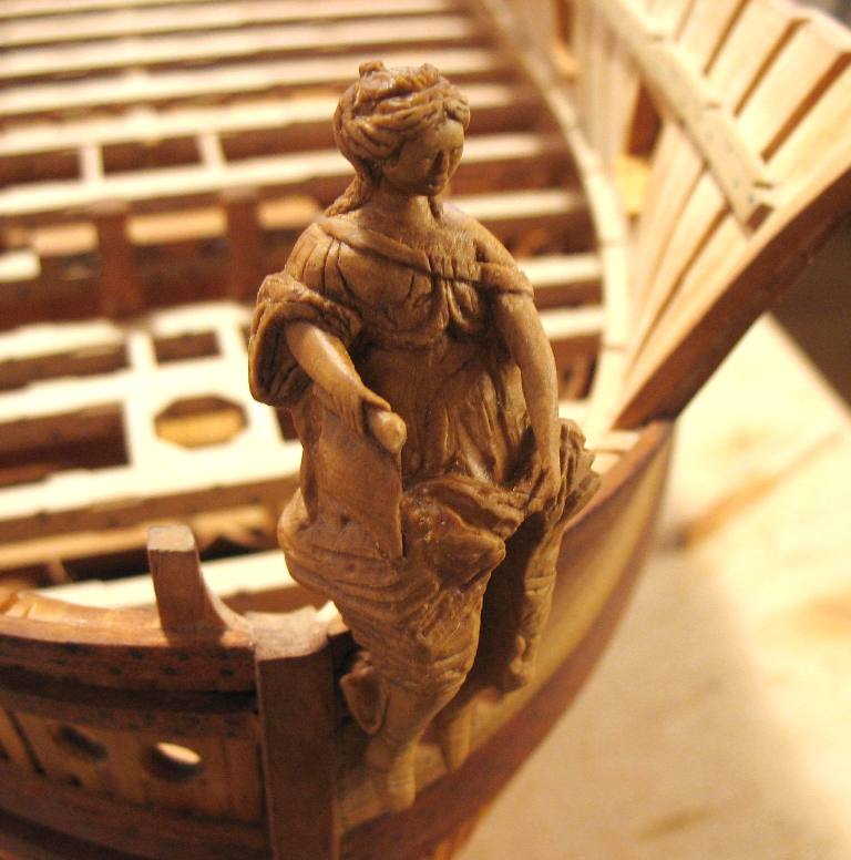 Trochę dla relaksu, co by odpocząć od pokładu zabrałem się za próbę wyrzeźbienia kobitki. Jest to moja pierwsza „rzeźba” w drewnie, więc nie jest łatwo, ale mocno się staram. Drewno to grusza nawet się nieźle daje obrabiać a narzędzie to jak zwykle nożyk i te moje niby dłutka używałem też frezów dentystycznych, ale bardzo mało jak na razie. Na tę chwilę mam głowę wyciapaną, trzeba ją jeszcze trochę pomiziać, co by gładka była i włosy poprawić, bo jakaś taka potargana jest, ale ogólnie nie jest źle myślałem, że będzie gorzej. Bawiłem się nad nią będzie ze 4h