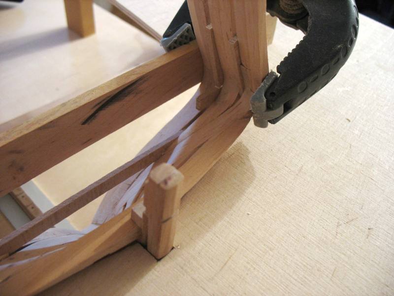 dokleiłem dwie ostatnie wręgi do rufy trochę nietypowe więc sporo kombinowania z nimi było no ale teraz pięknie wszystko schnie :D