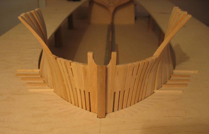 Kaziu powoli zaczyna się „zagęszczać „ stępka i wygląda to super aż szkoda będzie tą mozolną prace zakrywać plankami .
