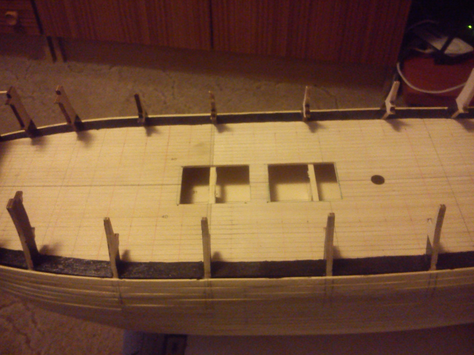 W moim zamyśle ten pokład zrobię widoczny przez furty działowe .Będzie obsadzony kompletnymi działami z olinowaniem i wyposażeniem pokładu.Taki jest zamysł, a jak wyjdzie w praktyce to się zobaczy.