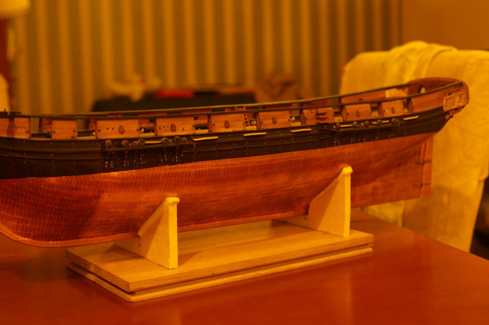Armatki. Dwa działa 8-funtowe i 14 karonad 24 funtowych. Wzór karonady z bukszpanu, forma silikon Mold Star15, a odlewy z żywicy tej samej firmy. Po oczyszczeniu lufy pociągnąłem metalizerem żeby wyglądały jak z żelaza. Później trochę ściemnieją. Na razie wstępne spasowanie z lawetami.