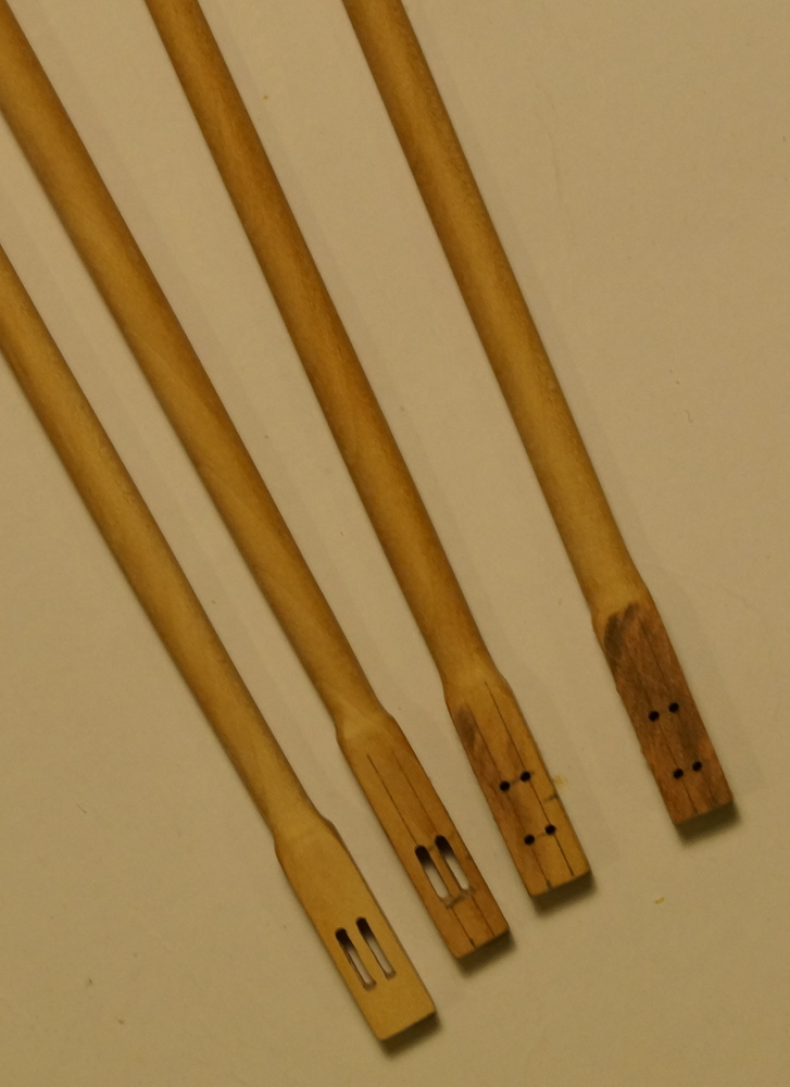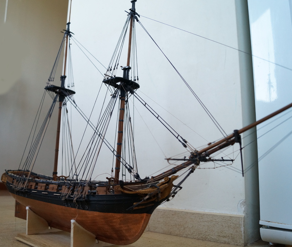 Uff... Trochę to trwało, ale w końcu mam maszty gotowe do ustawienia na pokładzie. Przy okazji skręciłem sobie jeszcze trochę linek, które za chwilę będą potrzebne.