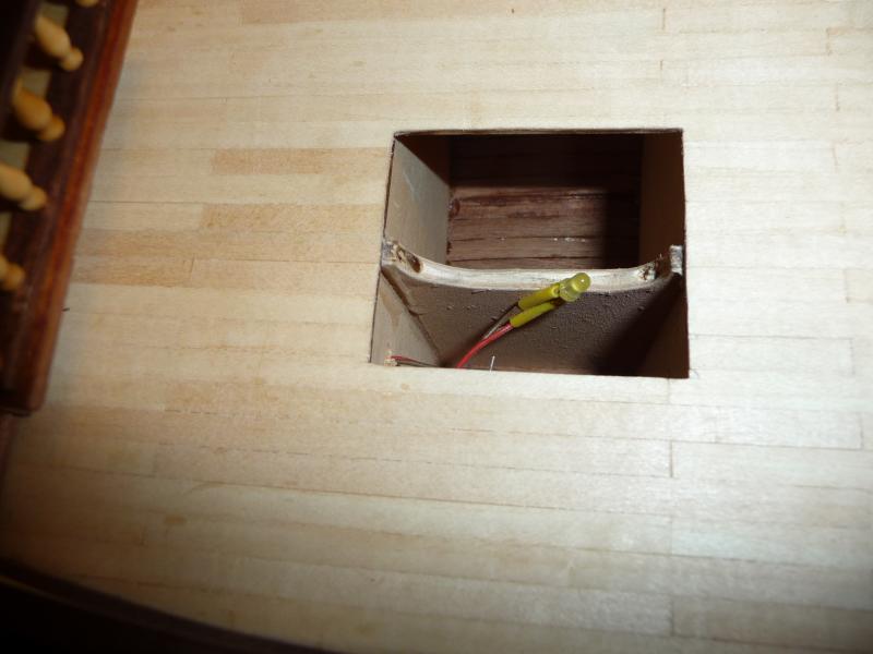 Jeszcze przed wykonaniem poszycia postanowiłem umiejscowić małe diody wraz z okablowaniem imitujące oświetlenie w miejscach greatingów. Mam nadziej, że efekt się uda.