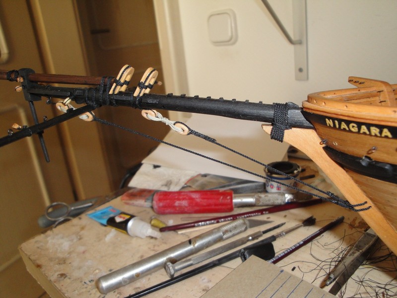 Ciag dalszy linek i supelkow. Dzieki relacji Jarcia o olinowaniu poznalem Polska nomenklature tych wszystkich sznureczkow. Na bukszprycie doszly jakies gaje, kolejne sztagi oraz pierwsze paduny (pomocnicze i stale). Pomalu zaczyna to wygladac jak zaglowiec.