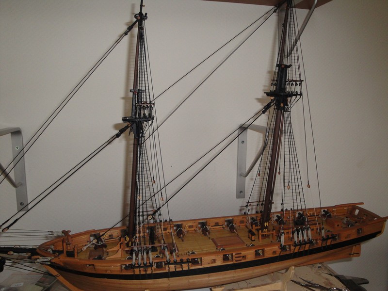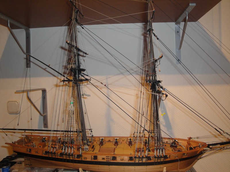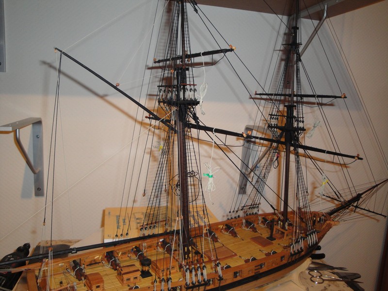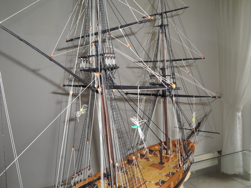 Doszly brasy i zwoje linek na kolkach. Olinowanie zbliza sie powoli do konca.