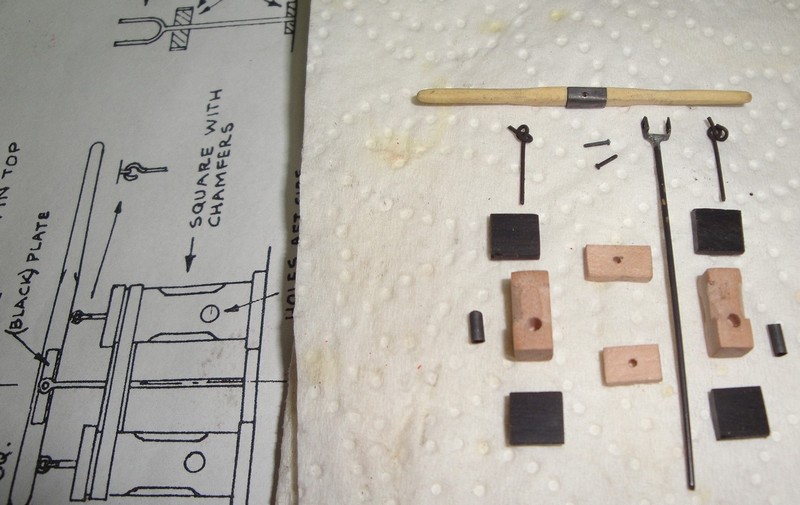 Przyszly kolki. Do dyspozycji sa dwie wersje: po prawej stronie, mosiezne ( do poczernienia) dlugosc 11mm, grubosc 1/1,2mm (trzonek/glowica), po lewej stronie, drewniane (orzech) dlugosc 10mm, grubosc 1,2/1,4mm. Ktore rozwiazanie byscie proponowali? Ja osobiscie preferuje te drewniane.