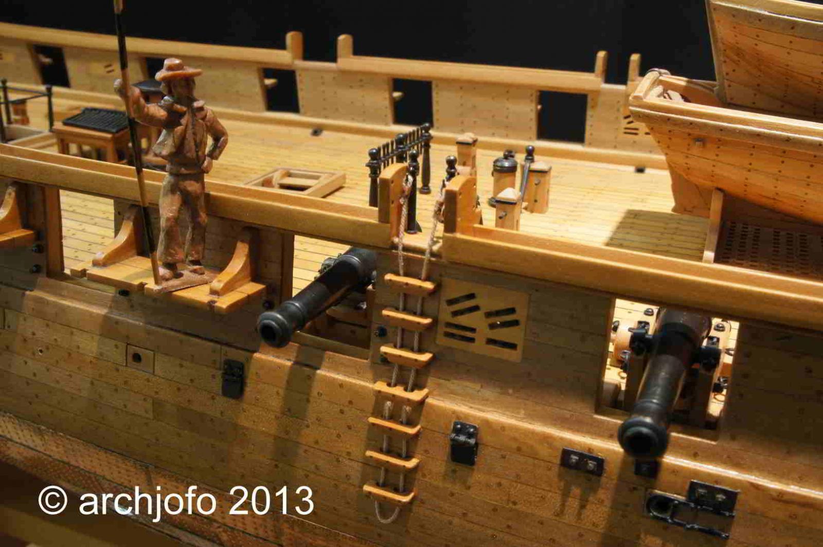 W dokumentacji (książka) kadłub jest czarny do linii wodnej.Na zdjęciach tak jest pomalowany model stojący w muzeum.Poniżej linii wodnej obity blachą miedzianą