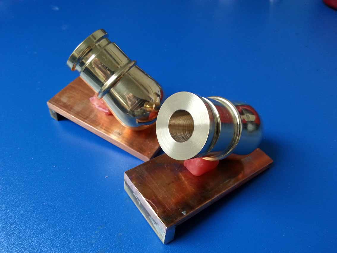 Co do fazki jest to pozostałość po kle w tokarce.Były to dwa różne kawałki mosiądzu,prawdopodobnie o różnej twardości.Co do dokładności,to w porównaniu z oryginałami oglądanymi w muzeach myślę że będą miały dokładniejsze wymiary zewnętrzne niż porównywane oryginały tego samego typu moździerza.