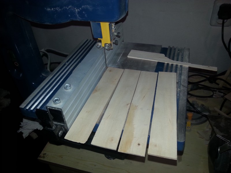 Co by zaoszczędzić drewno gruszy,zrobiłem próbę cięcia deseczki o szerokości prawie 40 mm na plasterki ok.2,5 mm po szerokości.Moim zdaniem wyszło idealnie.Wystarczy przeheblować i można wycinać planki do pokrycia rufy.