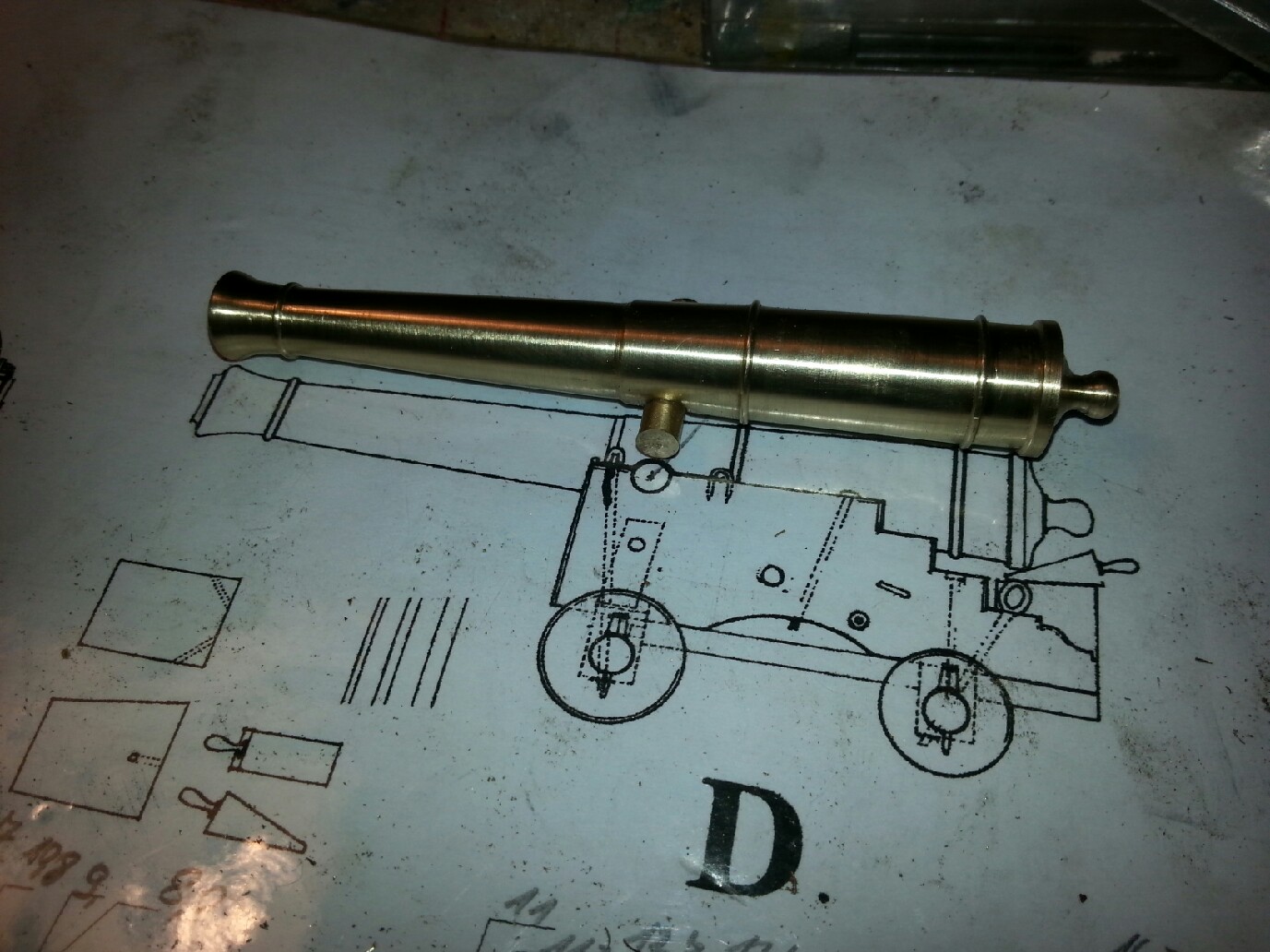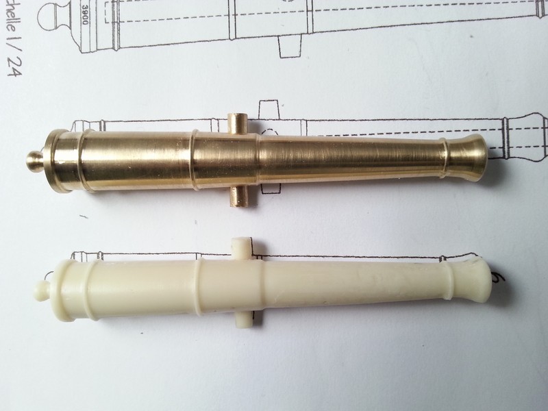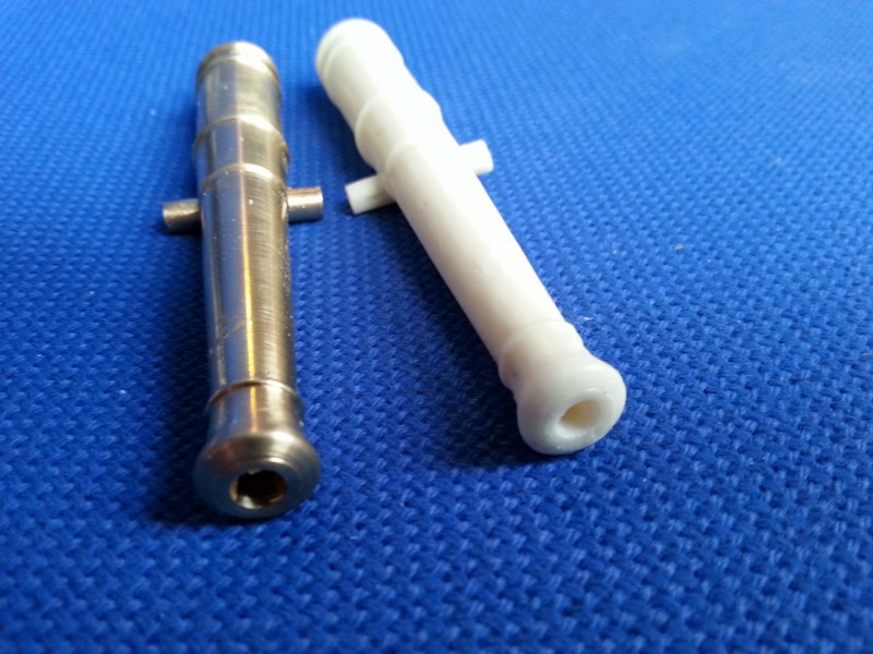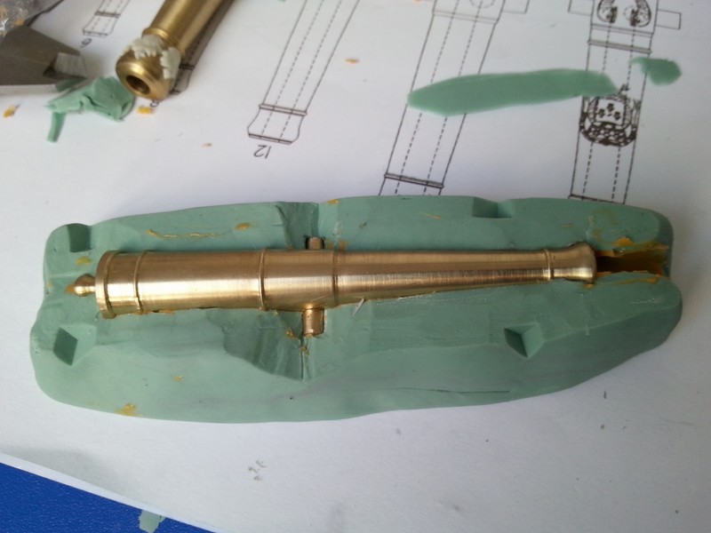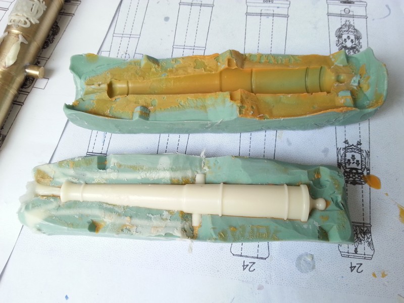 Postanowiłem spróbować powielić armatę w żywicy.W tym celu zrobiłem silikonową formę wielokrotnego użytku.Pierwszy odlew nie wyszedł,bo zapomniałem o kanałach odpowietrzających. Po ich wykonaniu drugi odlew był ok. Teraz wystarczy podbarwić żywicę pyłem mosiężnym lub grafitowym i odlewać.