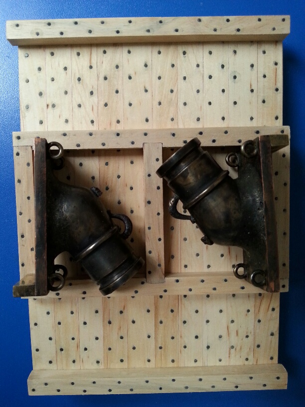 Powolutku przybywa części. Zrobiłem dwie ścianki skrzyni w której umieszczona była ruchoma podłoga z moździerzami.