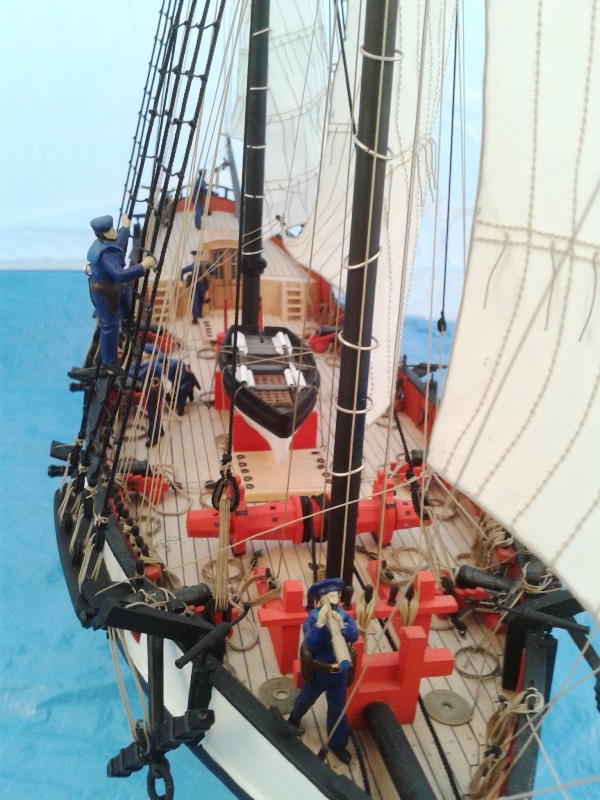 Model jest oparty o wycinankę Shipyard`u . Szkielet kartonowy, wypełnienie pianka, poszycie fornir. Moja "Berbice" została wcielona do służby po stronie Unii ( mam nadzieję że doczekała tych czasów ), stąd flaga i mundury marynarzy.