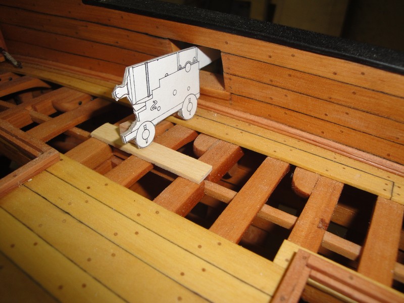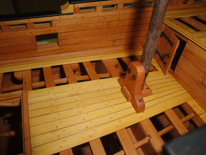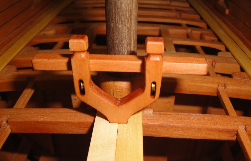 Myszor, pod lawety przyjda dodatkowe kawalki desek. To umocowanie masztu ma na modelu 3,5cm i wg planow jest z jednego kawalka drewna (a nie drzewa). W realu to przy skali 1:24 raptem 84cm. Kiedys byly grubsze deby.