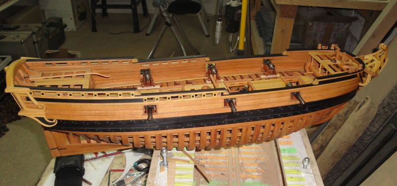 Teraz przyjdzie kolej na uzbrojenie. Poniewaz bede chcial ustawic na pokladzie wszystkie szesc dzial, to z braku miejsca wywale chyba szalupe na zewnatrz, taki jest moj plan.