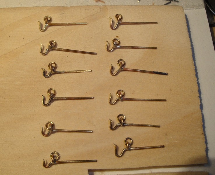 Zabralem sie za wykonanie i instalacje takich roznych drobiazgow: haczyki, kolka, knagi, olinowanie lawet itp. Knagi sa od Mirka (ev. odlewy Baranowa).