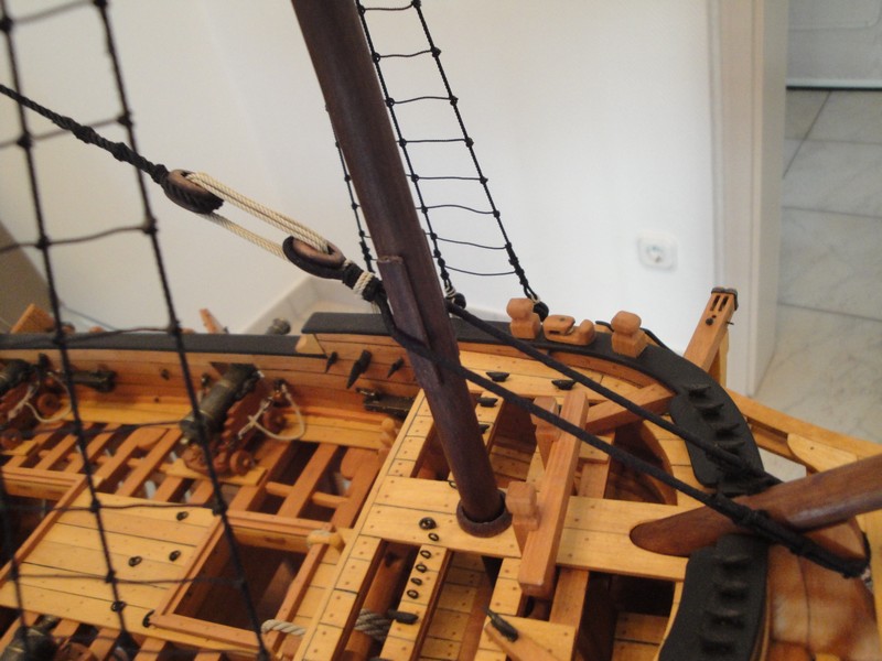 Dziekuje za uwage odnosnie ukladu want. Ryszardzie, ta zasada jest u Mondfelda dyskutowana kontrowersyjnie i w glownym stopniu uzalezniona od czasu powstania jednostki. Przed XVII wiekiem wszystkie wanty byly odkladane nach achtern (do tylu). W XVII wieku, tak jak piszesz, krotki koniec na lewo od wanty, czyli Steuerbord do tylu a Backbord do przodu. Po XVII wieku uzywano obu systemow. Poniewaz LB jest z XVII w. powinno byc na zmiane. Przeoczylem ten XVII w. ale chyba juz tak zostawie; przy nastepnym modelu bede bardziej uwazal na ten szczegol