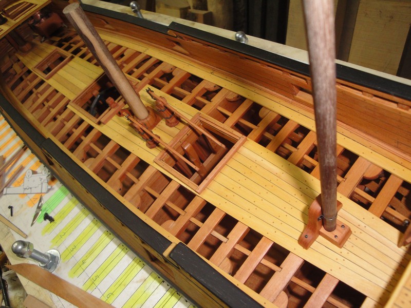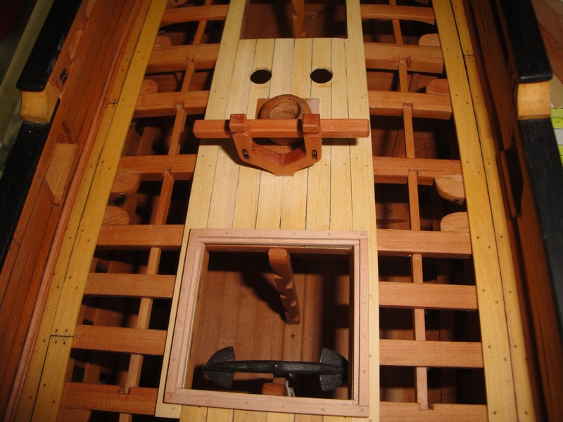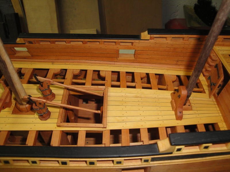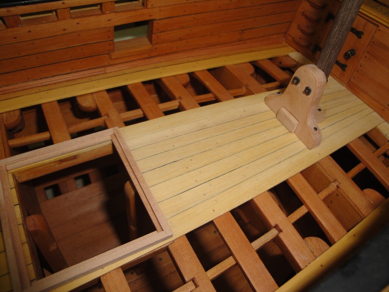 Myszor, pod lawety przyjda dodatkowe kawalki desek. To umocowanie masztu ma na modelu 3,5cm i wg planow jest z jednego kawalka drewna (a nie drzewa). W realu to przy skali 1:24 raptem 84cm. Kiedys byly grubsze deby.