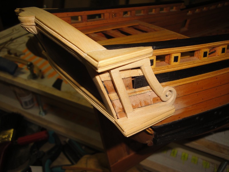 Siberian, musze Cie rozczarowac, ale te bardziej skomplikowane rzezby/ornamenty beda chyba wykonane z modeliny bo do drewna nie mam nerwow (zobacz tez poczatek relacji). Narazie pomalutku dekoruje rufe.