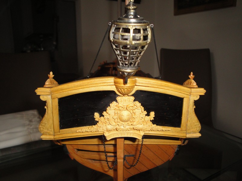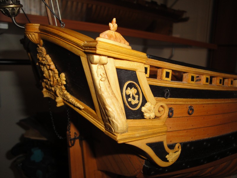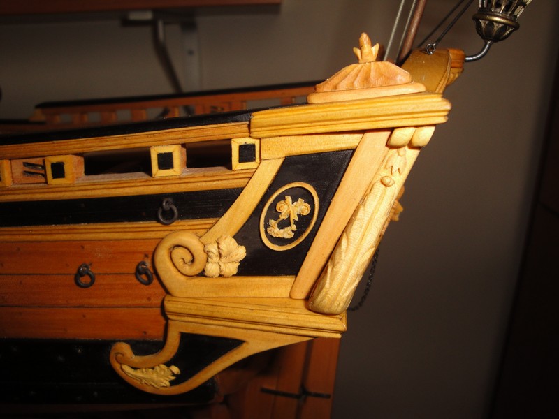 Pod Choinka znalazlem nastepne deseczki z wyfrezowanymi elementami zdobniczymi do LB, jeszcze raz bardzo dziekuje Mikolajom: Mirkowi i Zbyszkowi. Po wypreparowaniu i wygliglowaniu zostaly umieszczone na swoich miejscach. Dekoracja rufy jest teraz kompletna.