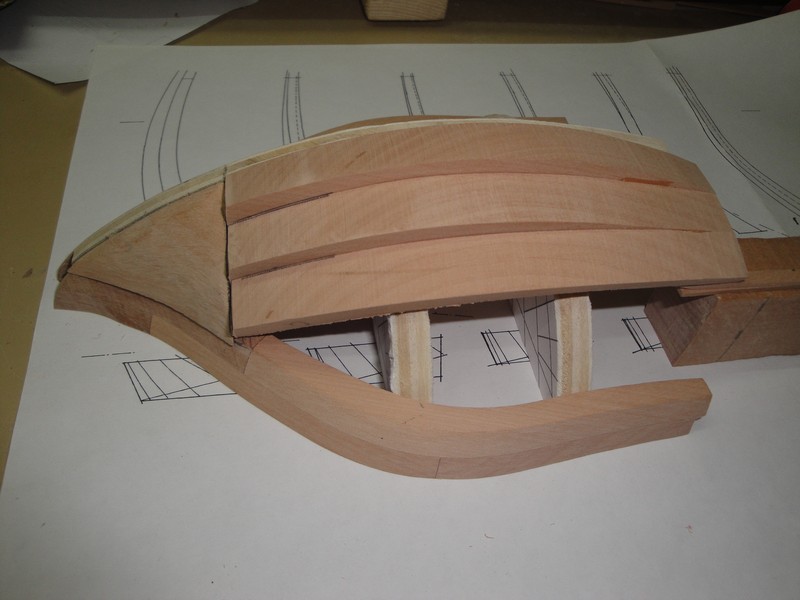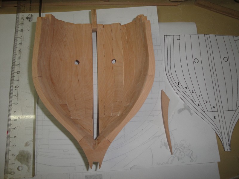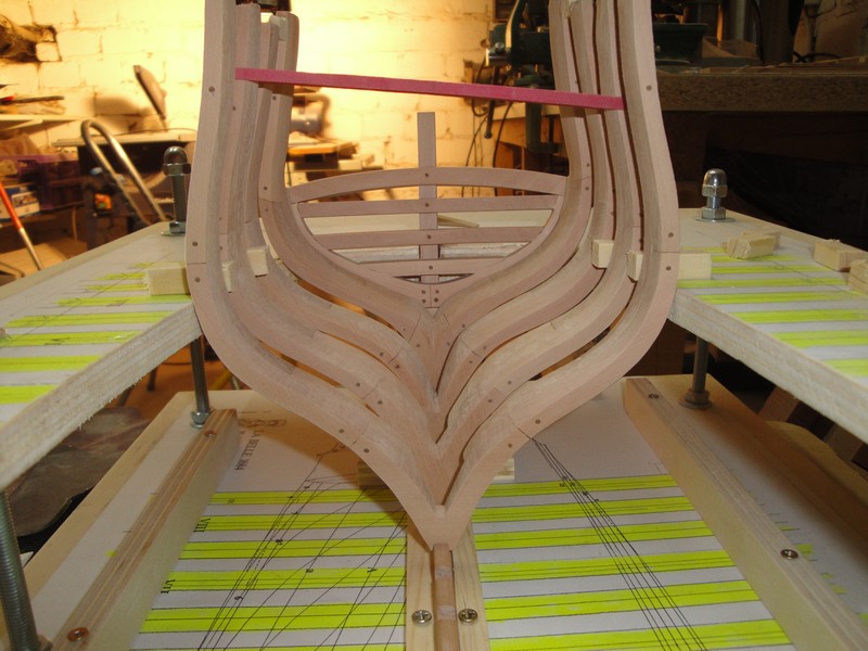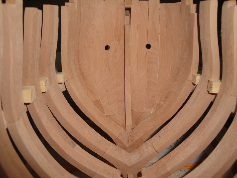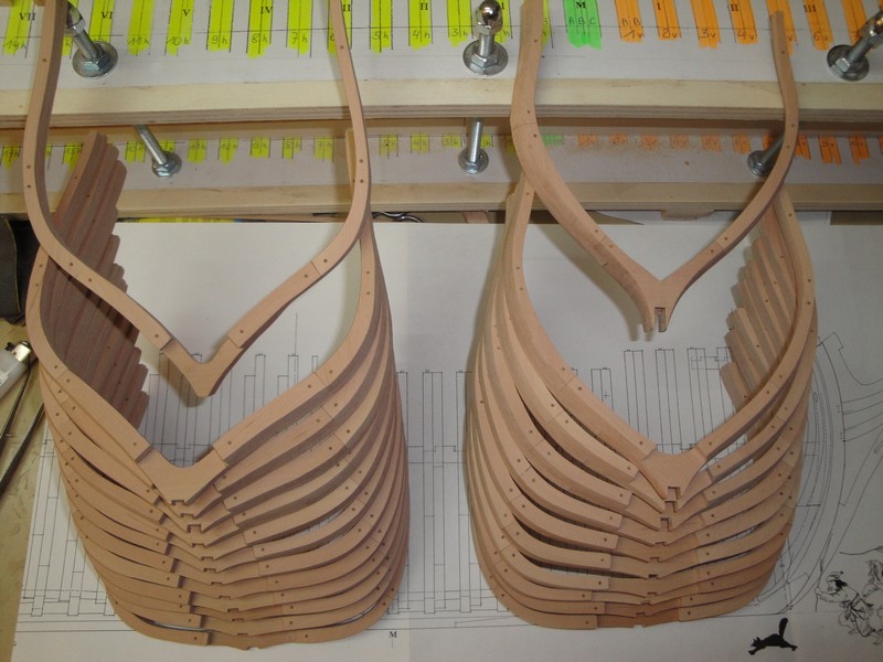 Krzywulce zostaly przylepione do wregi i wygliglowane. Calosc zostala dopasowana do kilu.