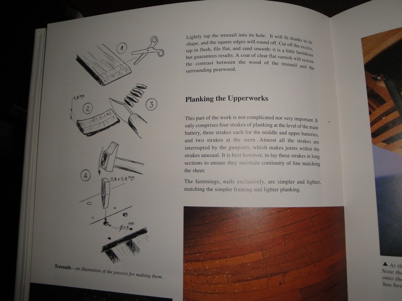 Taką ogólną zasadę przyjęto przy budowie okrętów. Jedynie w miejscu, gdzie miała znajdować się stanowisko działowe owy gwóźdź był zastępowany treenails, gdyż to miejsce było i tak wycinane