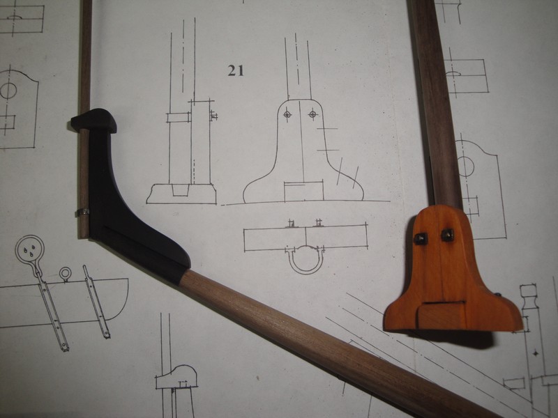 no i przyszedl czas na ostatnie kawalki drewna; wystrugalem dolne reje (material to heban). Teraz juz nic mi nie pomoze i trzeba sie bedzie zabrac za bloczki, linki i supelki.