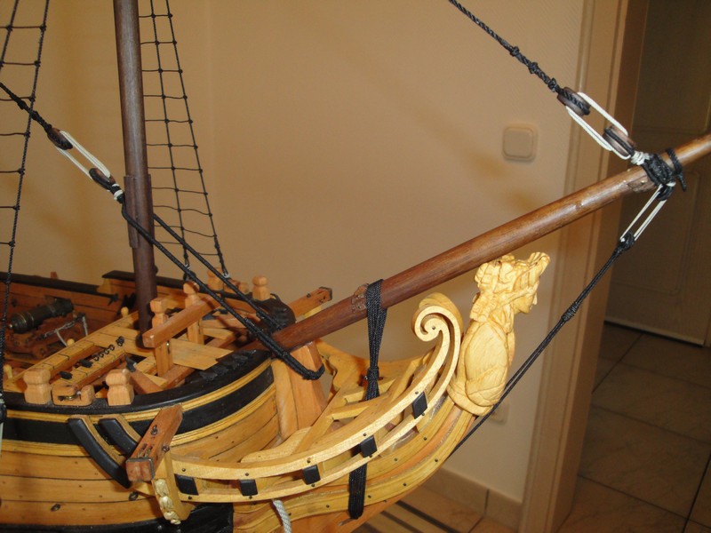 Dziekuje za uwage odnosnie ukladu want. Ryszardzie, ta zasada jest u Mondfelda dyskutowana kontrowersyjnie i w glownym stopniu uzalezniona od czasu powstania jednostki. Przed XVII wiekiem wszystkie wanty byly odkladane nach achtern (do tylu). W XVII wieku, tak jak piszesz, krotki koniec na lewo od wanty, czyli Steuerbord do tylu a Backbord do przodu. Po XVII wieku uzywano obu systemow. Poniewaz LB jest z XVII w. powinno byc na zmiane. Przeoczylem ten XVII w. ale chyba juz tak zostawie; przy nastepnym modelu bede bardziej uwazal na ten szczegol