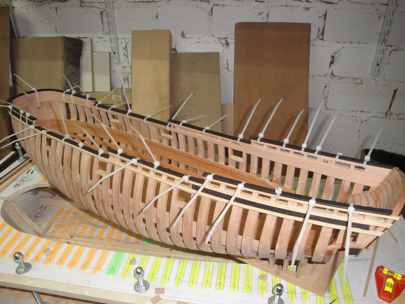 Przede wszystkim dziekuje za uwagi i uwazne sledzenie relacji. Na planach, trzy gorne planki powyzej odbojnicy sa z jednego kawalka drewna. LB, pomimo ze byla mala jednostka, miala ok. 15m dlugosci (od dzioba do rufy). Nie jest mi znane, zeby do budowy uzywano takich dlugich desek (przecietnie ca 6m), czyli jakies polaczenia musialy byc. Wszystkie planki ponizej odbojnicy sa laczone. Tyle na temat planow.