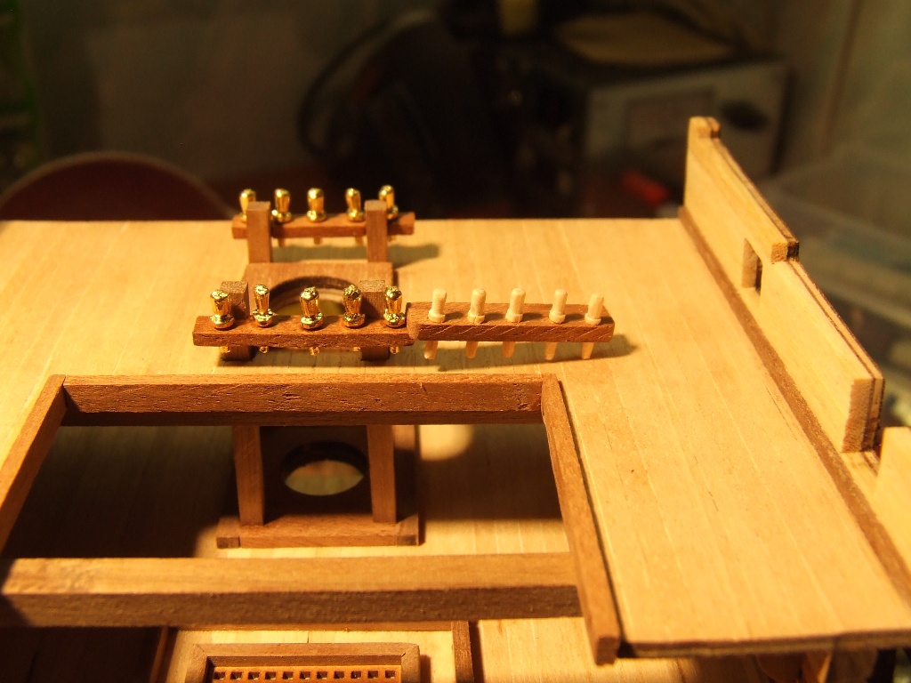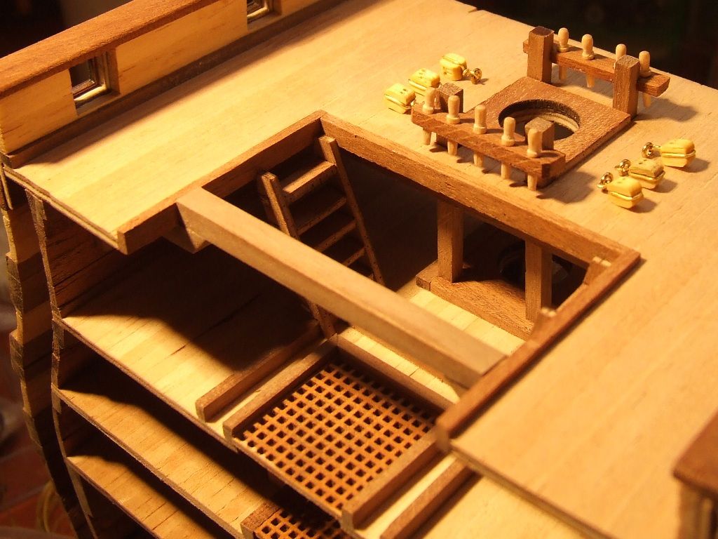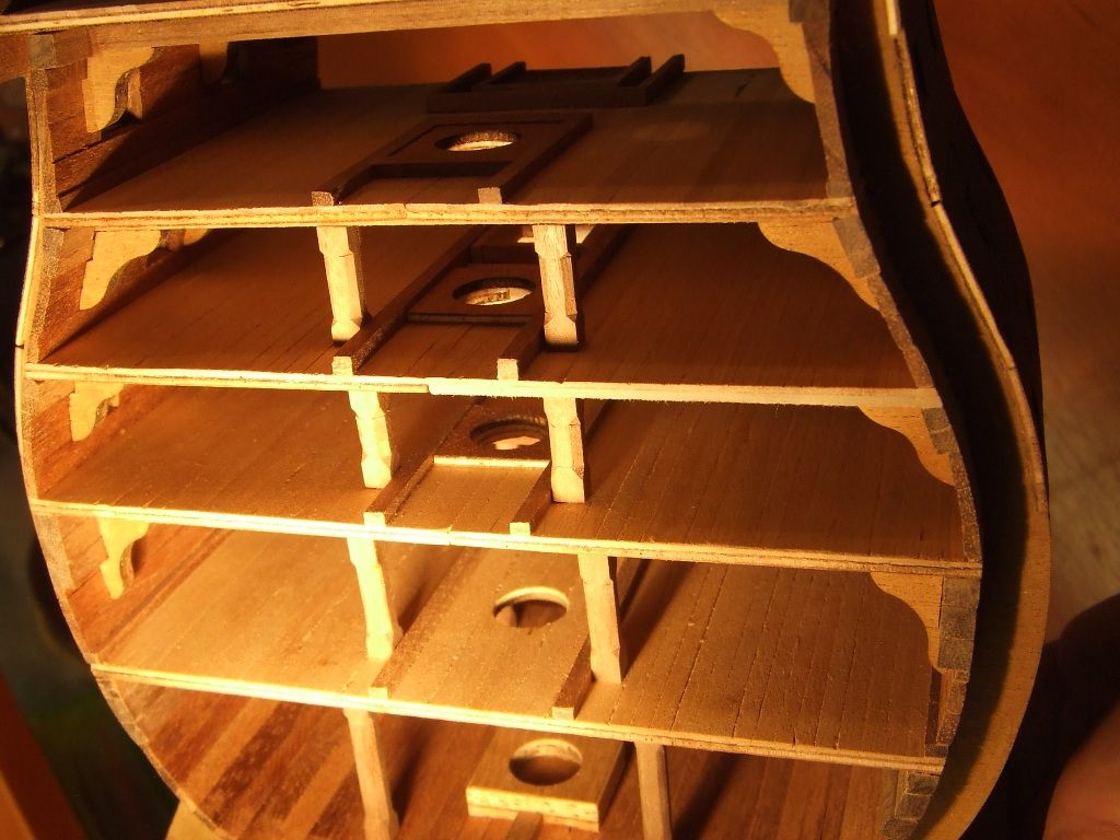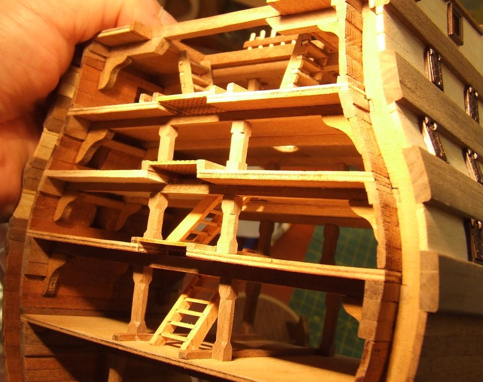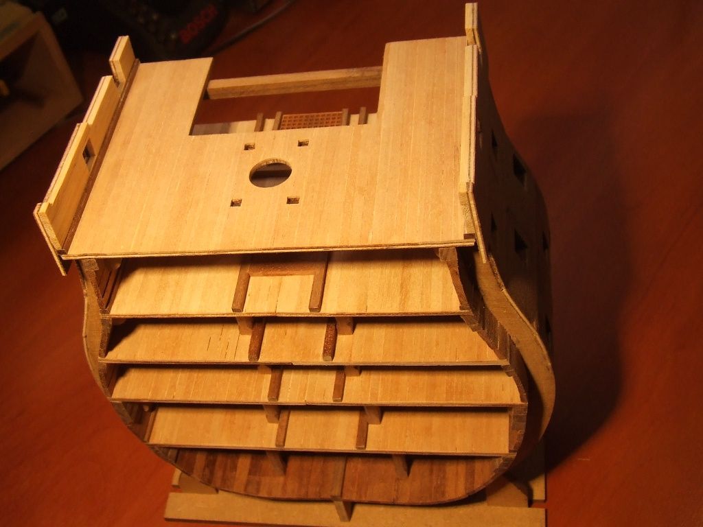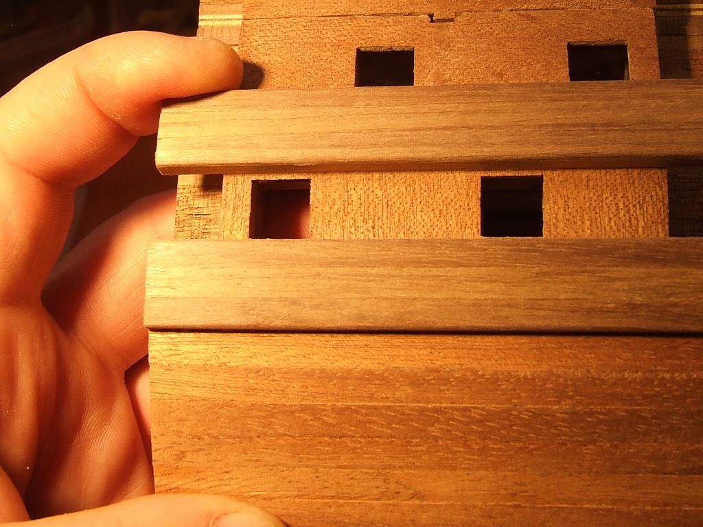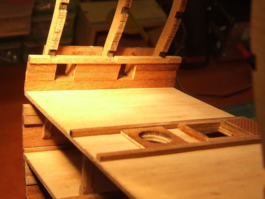Pierwszy i nie ostatni poważny błąd. Listwy pokładowe przyklejone zostały na jeden z półpokładów nie z tej strony. Oderwanie po klejeniu Pattexem jest niemożliwe. Zrobiłem drugi pokład z kartonu.