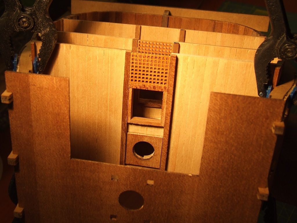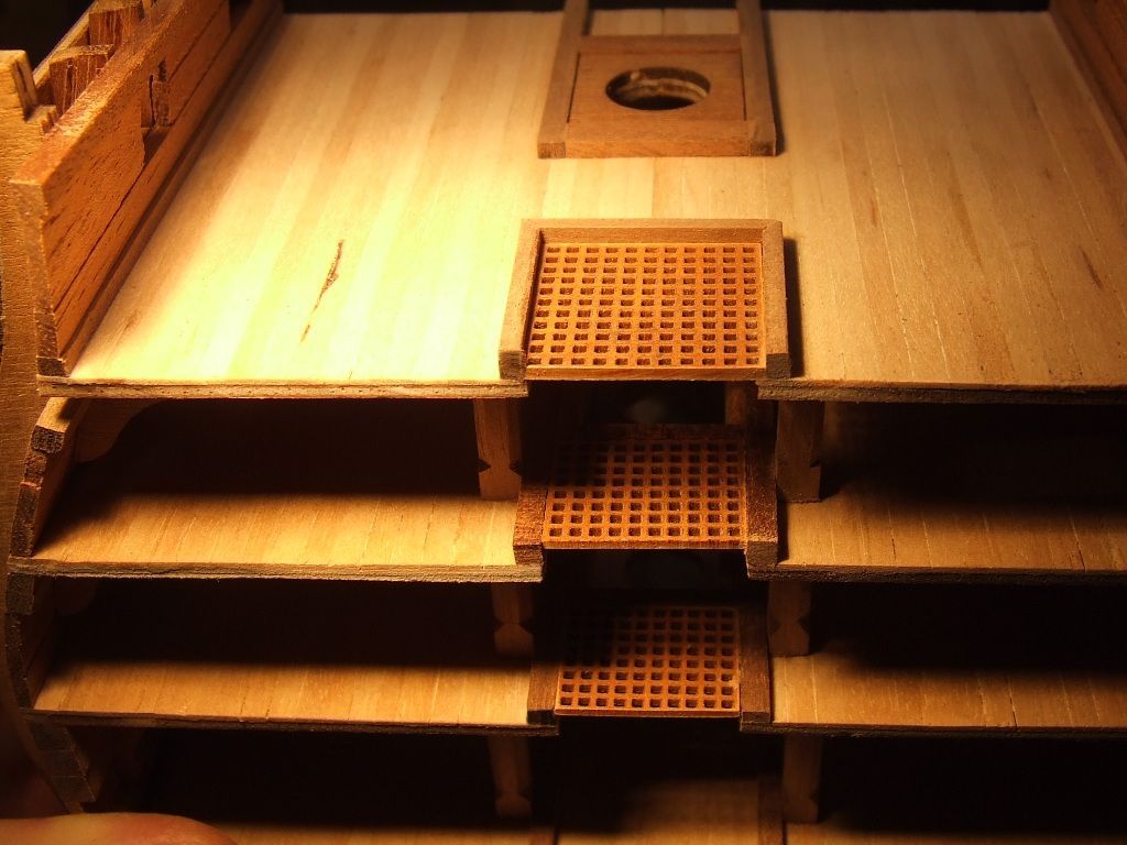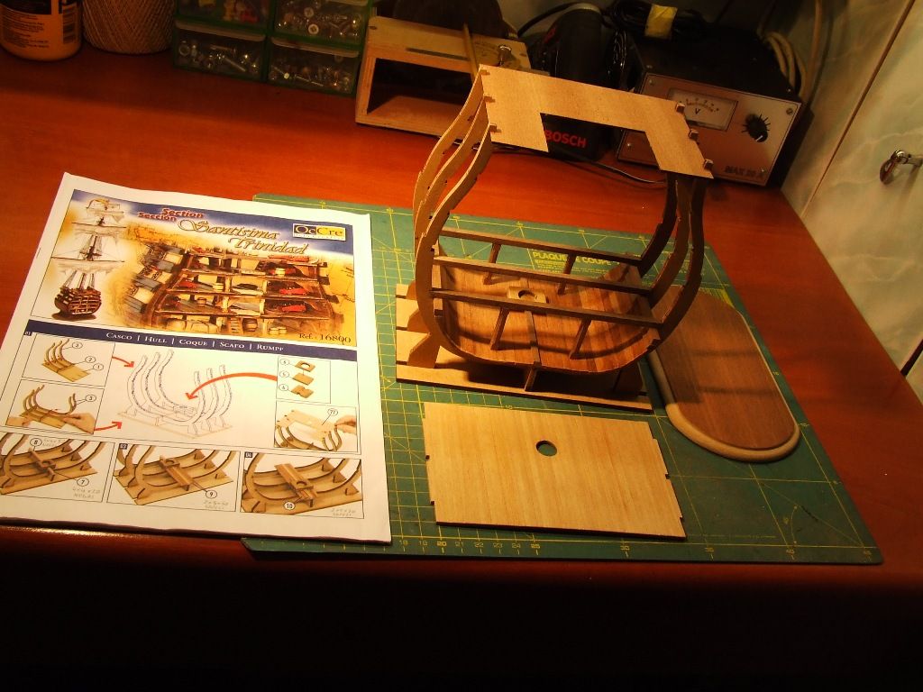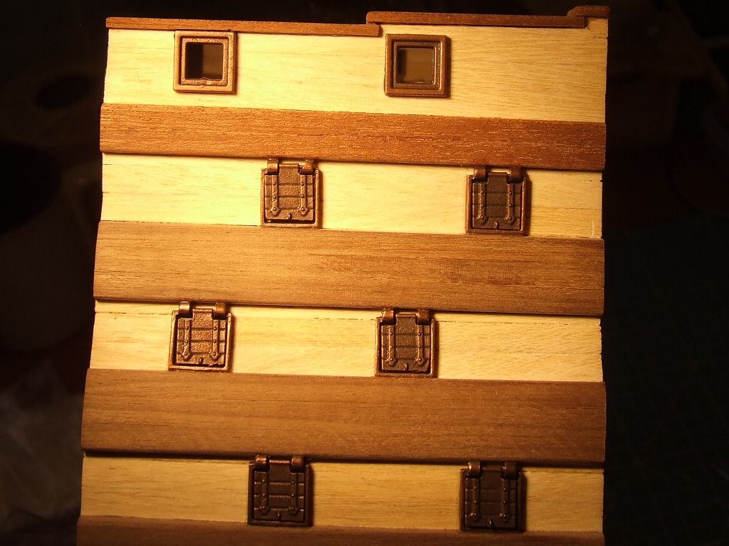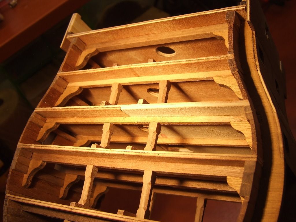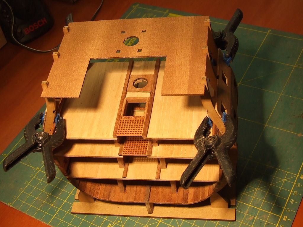 Pierwszy i nie ostatni poważny błąd. Listwy pokładowe przyklejone zostały na jeden z półpokładów nie z tej strony. Oderwanie po klejeniu Pattexem jest niemożliwe. Zrobiłem drugi pokład z kartonu.