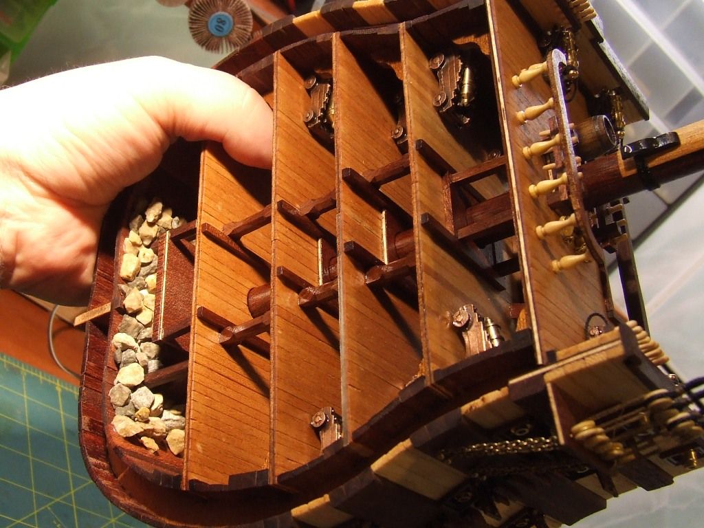 Wkleiłem "artylerię". Pomalowałem pokostem lnianym.