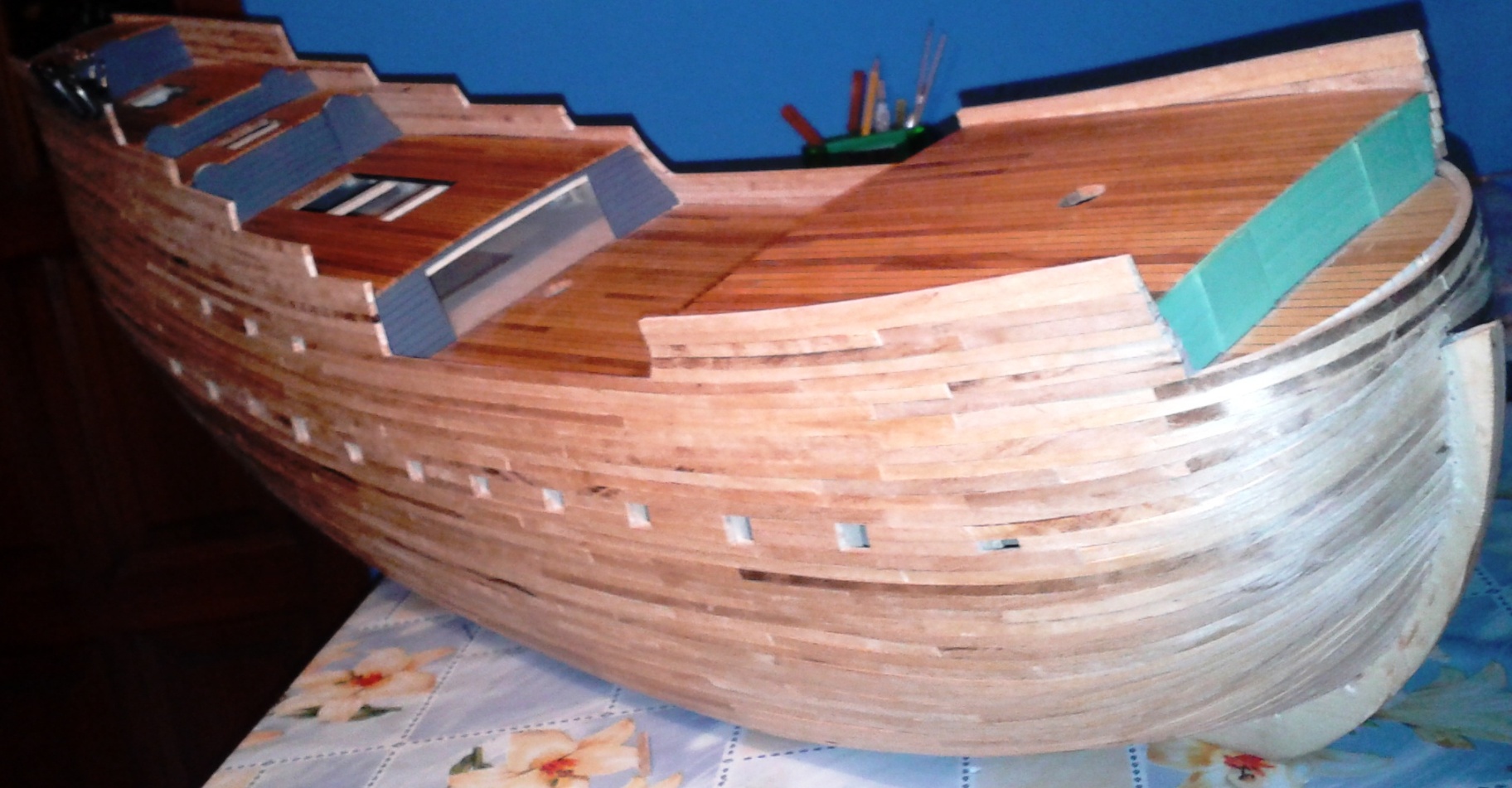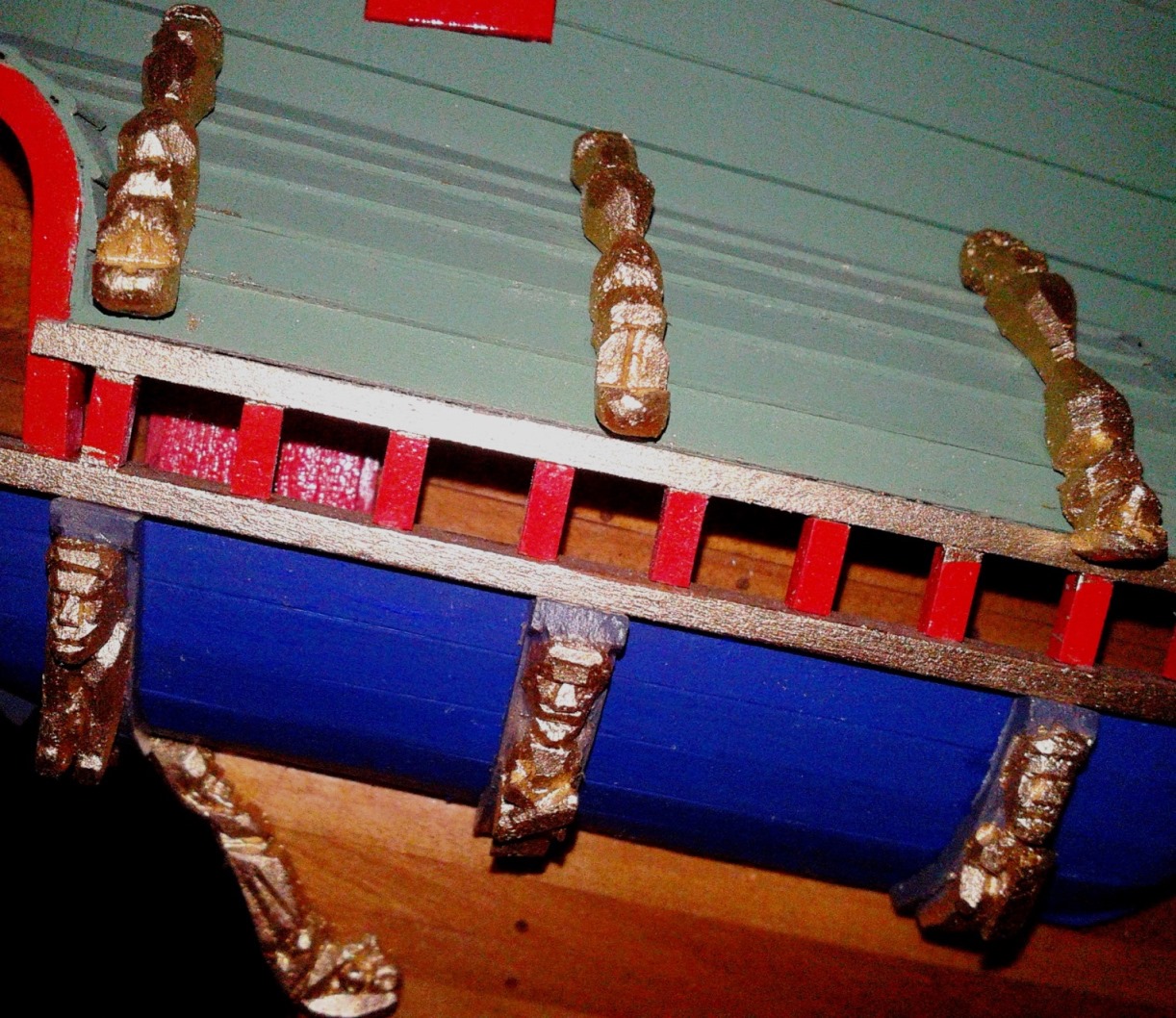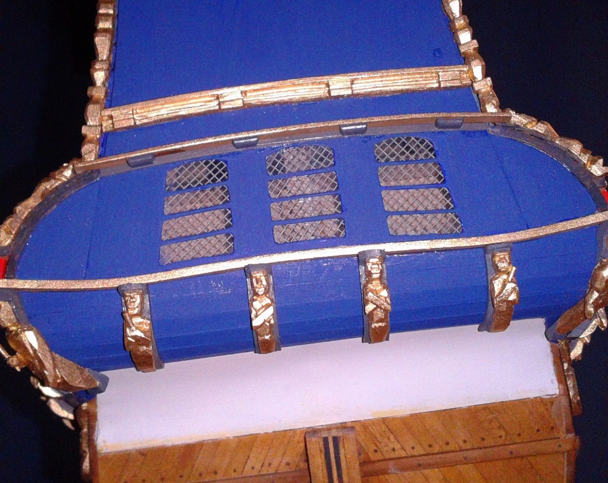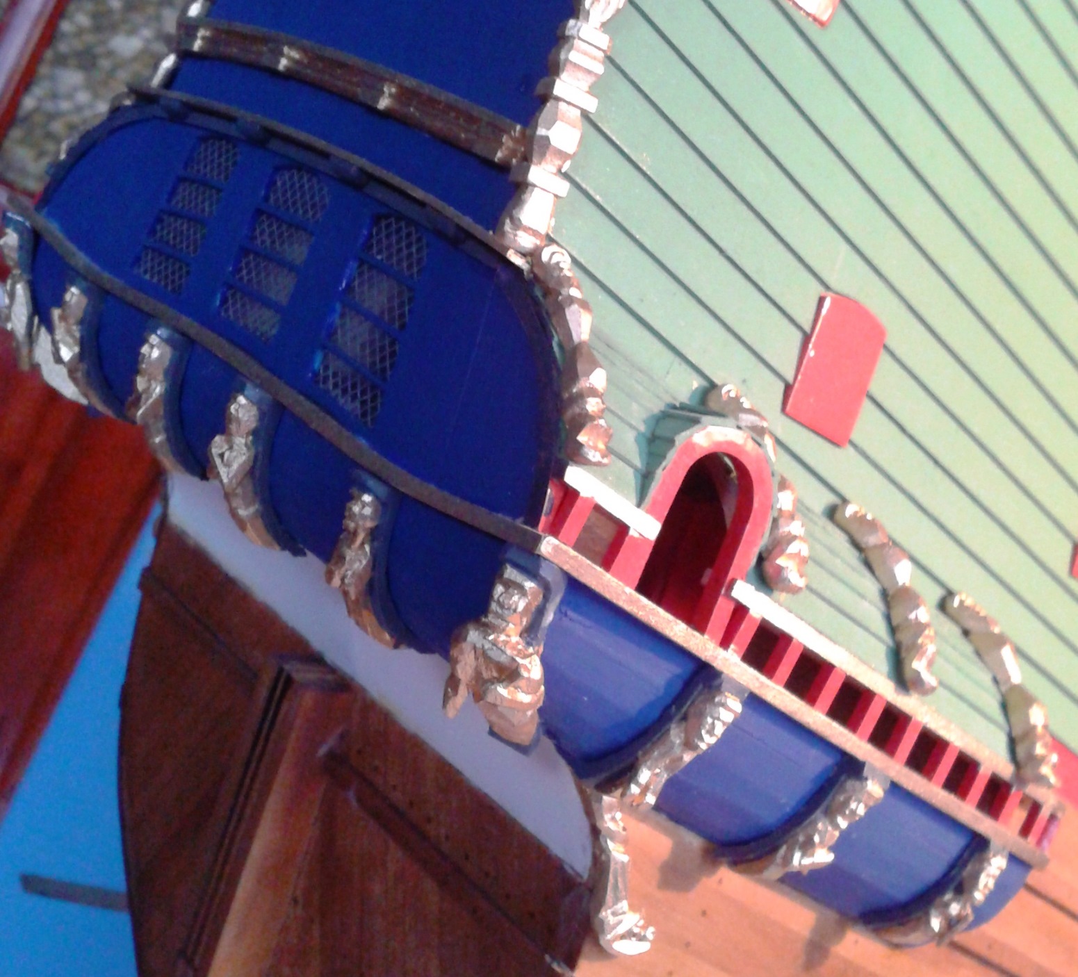 Witam ponownie. Oto krótkie sprawozdanie z postępów prac. Wykonałem część zdobień Batavii, jak wcześniej wspomniałem, moje umiejętności w tym zakresie odbiegają od średniej prezentowanej na tym forum, ale może krytyka nie będzie zbyt miażdżąca