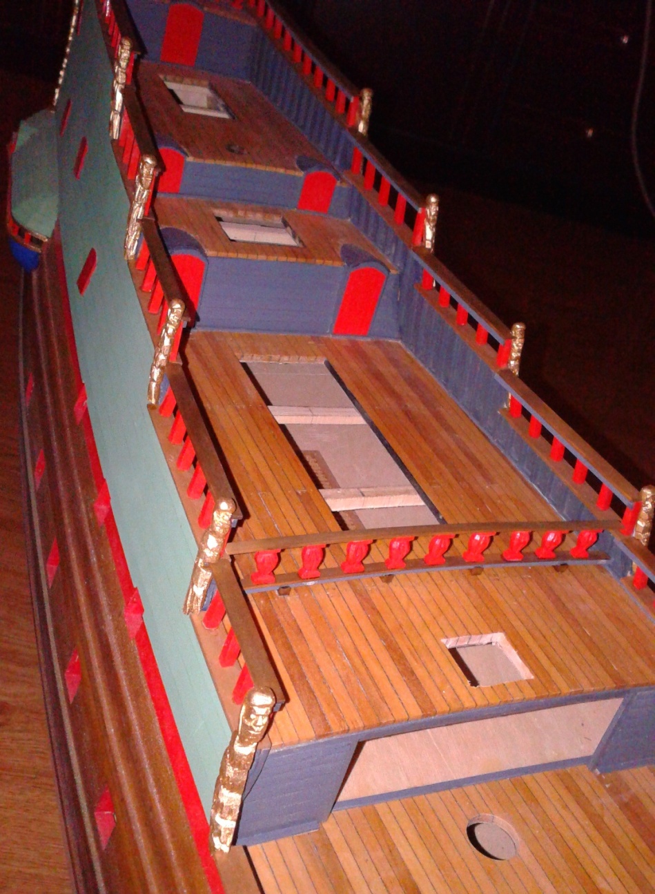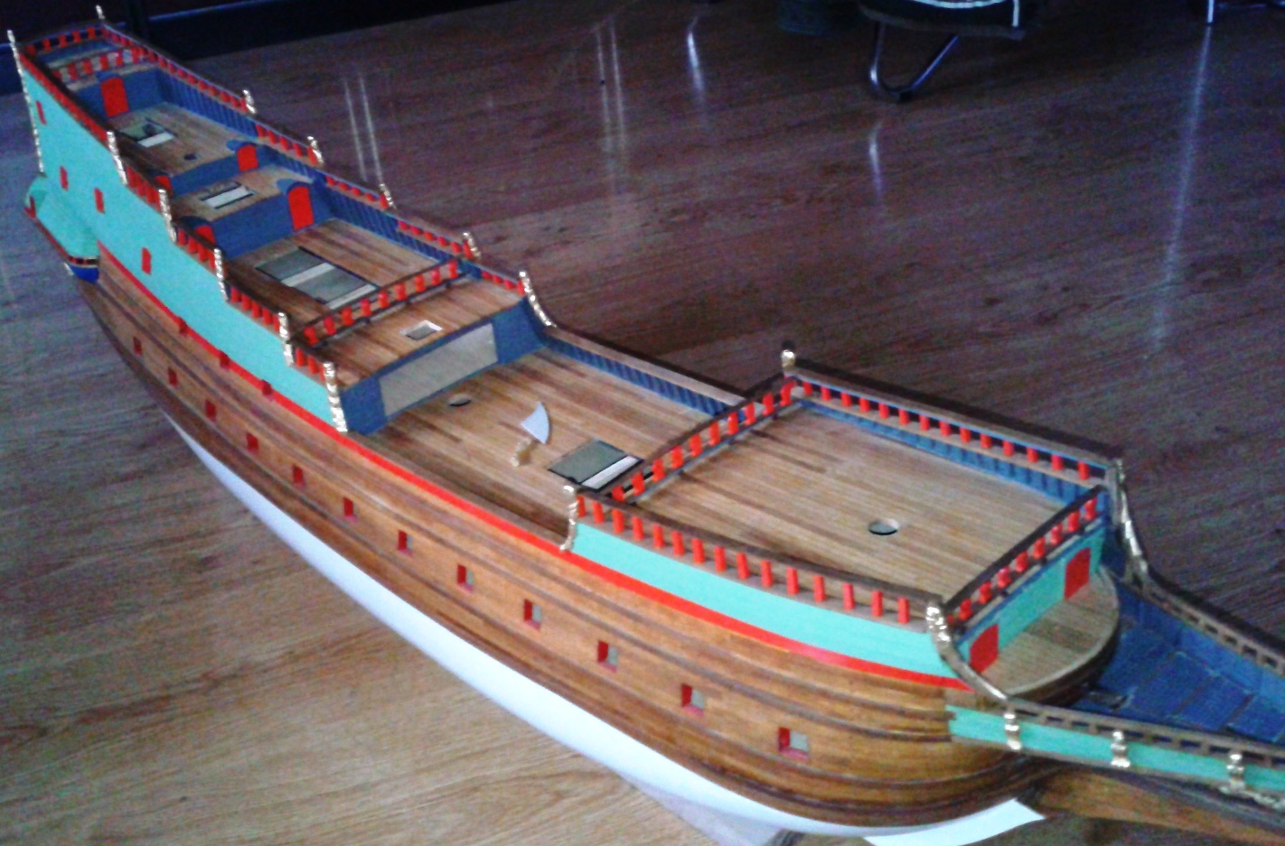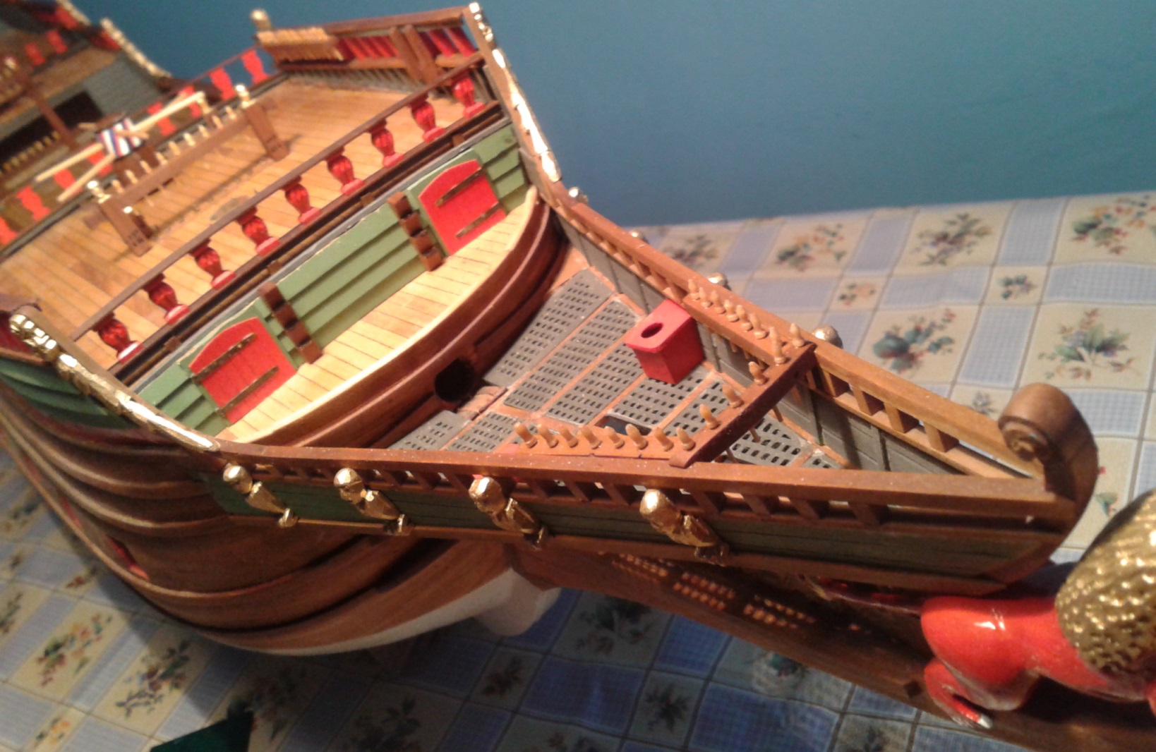 Witam ponownie. Oto krótkie sprawozdanie z postępów prac. Wykonałem część zdobień Batavii, jak wcześniej wspomniałem, moje umiejętności w tym zakresie odbiegają od średniej prezentowanej na tym forum, ale może krytyka nie będzie zbyt miażdżąca