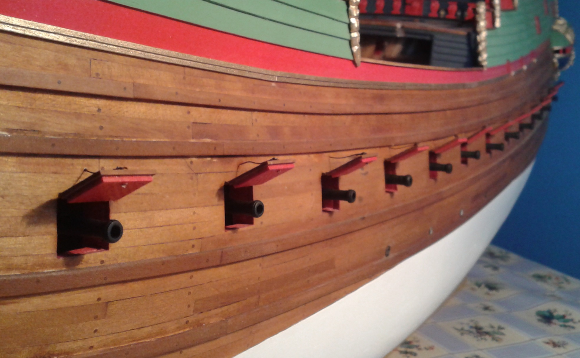 Zamontowałem lufy i pokrywy na pokładzie działowym. Początkowo miałem to zrobić dopiero po zakończeniu prac z takielunkiem, ale stwierdziłem, że może to być dużo trudniejsze niż teraz. Cóż, trzeba