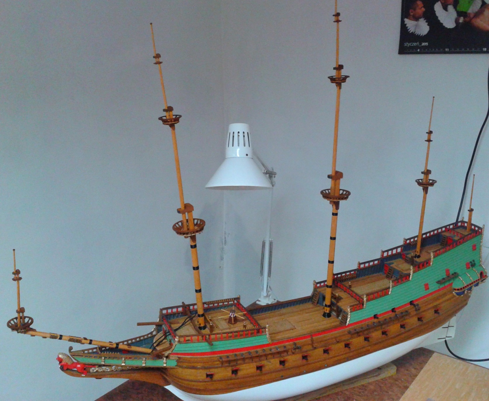 Bukszpryt już niemal gotowy do montażu, kolumny masztów w stanie embrionalnym